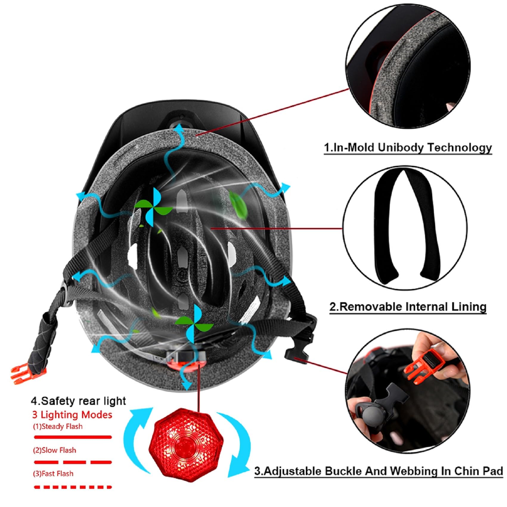 • Warning Tail Light on the back,3 modes,Steady Flash/Slow Flash/Fast Flash ,Bring More Comfortable and Safety for your outdoor sports experience