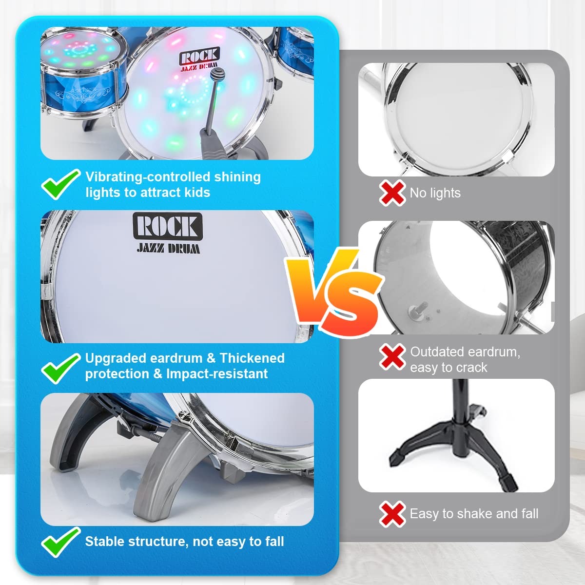 Kids Drum Set for Toddlers with 5 Jazz Drum Kit & Lights (Vibrating-Controlled) & Alloy, Musical Instruments Toys, Boys Gifts for Aged 1-3 3-5