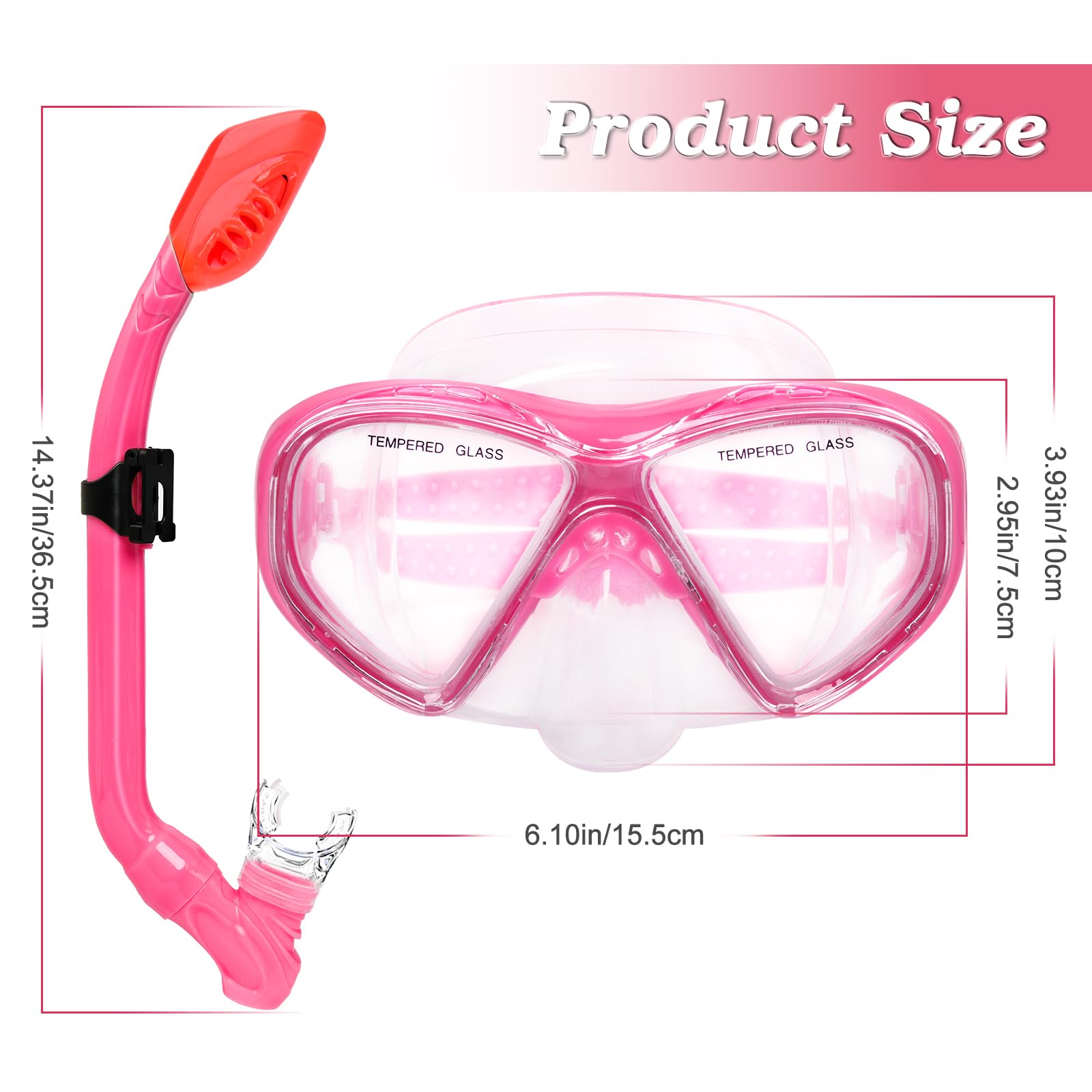 Kids Snorkel Set Dry Top Snorkeling Gear for Kids Youth Boys Girls Junior Age 5-15,Tempered Glass Swimming Diving Mask and Snorkel Set 180 Degree Panoramic View (Light Pink)