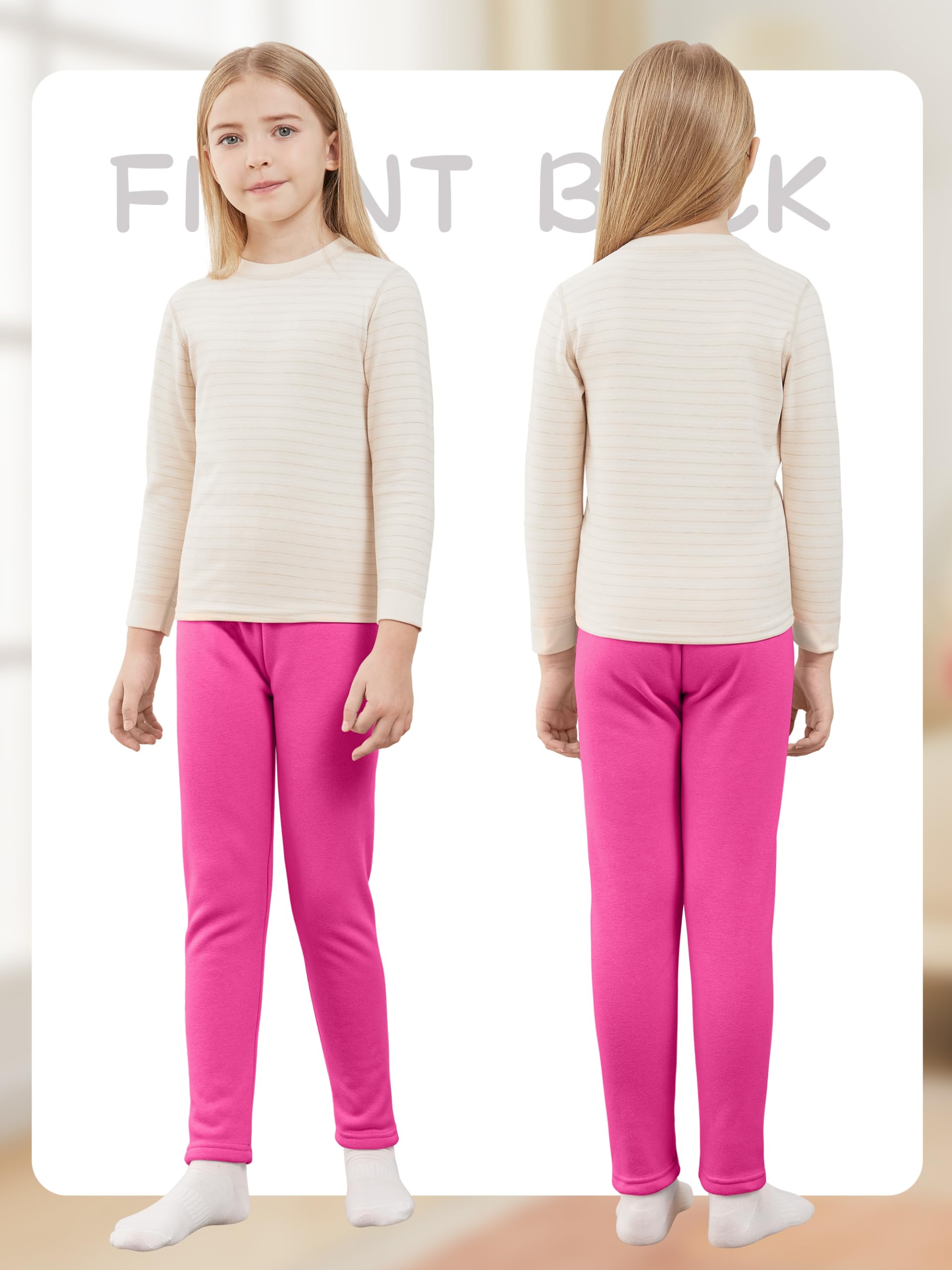 Kiiavoro Girls Fleece Lined Leggings Cotton Kids Winter Warm Leggings Thick Thermal Tights Pants