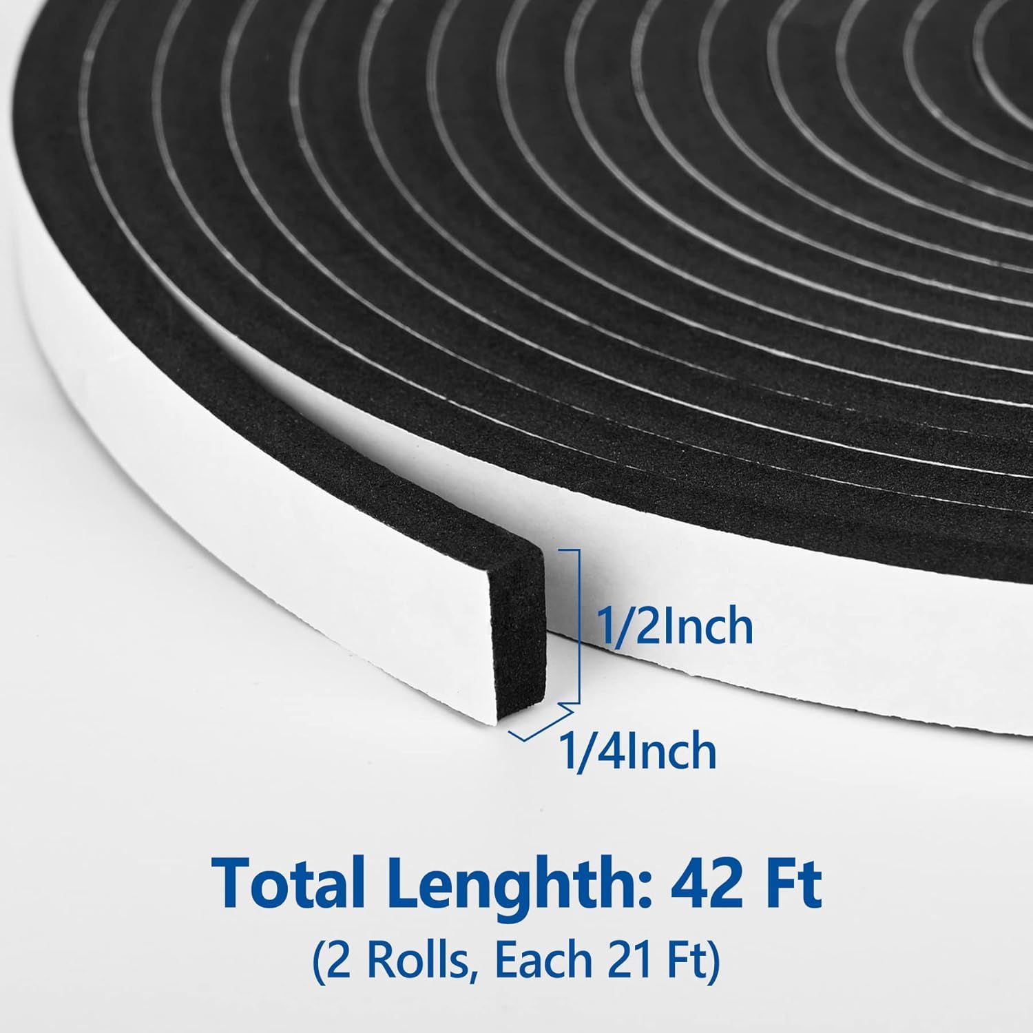 • 【Size of This Foam Tape】1/2 inch Wide x 1/4 inch Thick x 21 ft Long x 2 rolls. The Neoprene sponge foam tape is easy enough to customize and cut to size with scissors or blade, and bend easily and conform to any shape