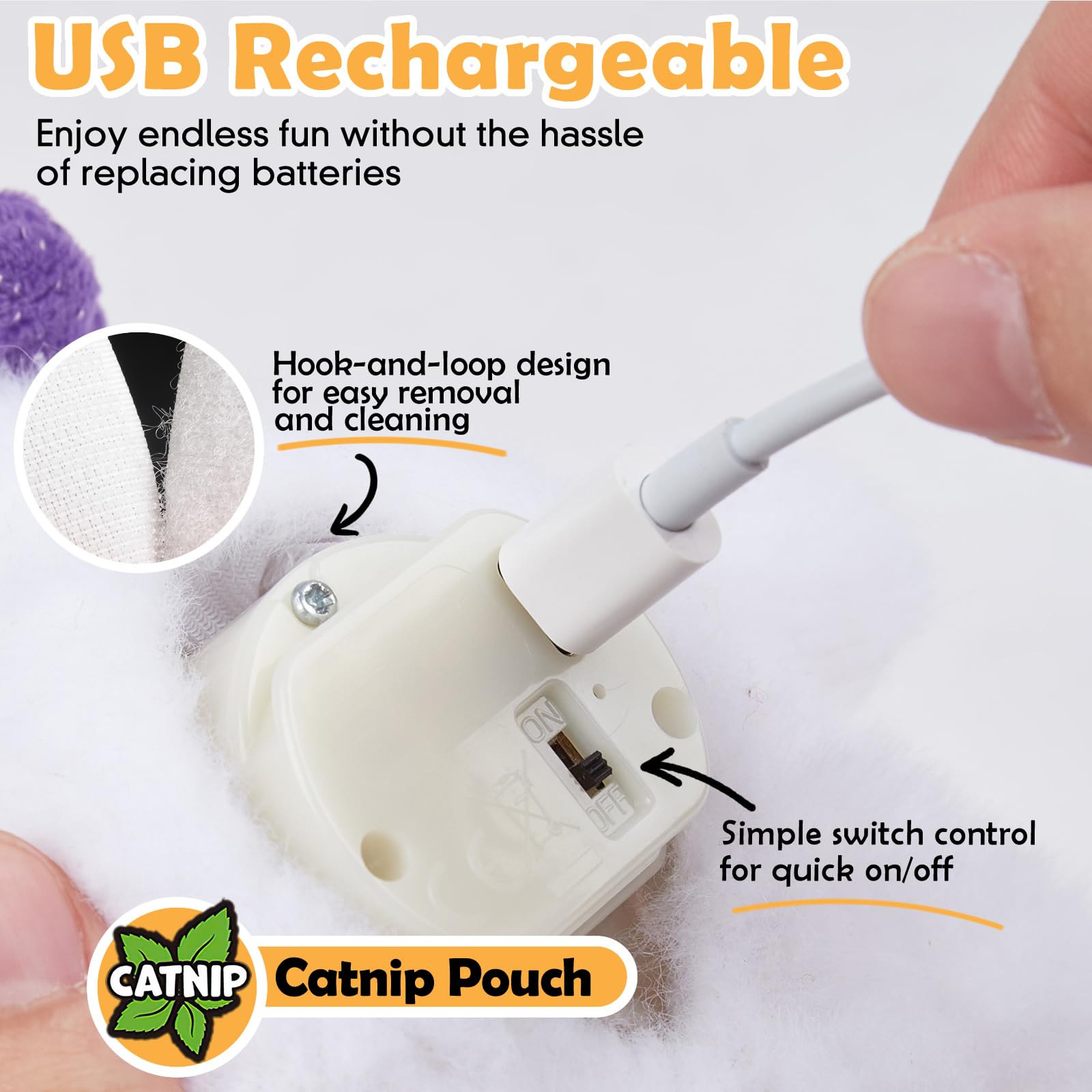 • 【USB Rechargeable & Intelligent】Our halloween cat toy is USB rechargeable with a long battery life. It's intelligently designed to pause every 15 seconds of inactivity, conserving energy. But don't worry, it springs back to life as soon as your cat interacts with it