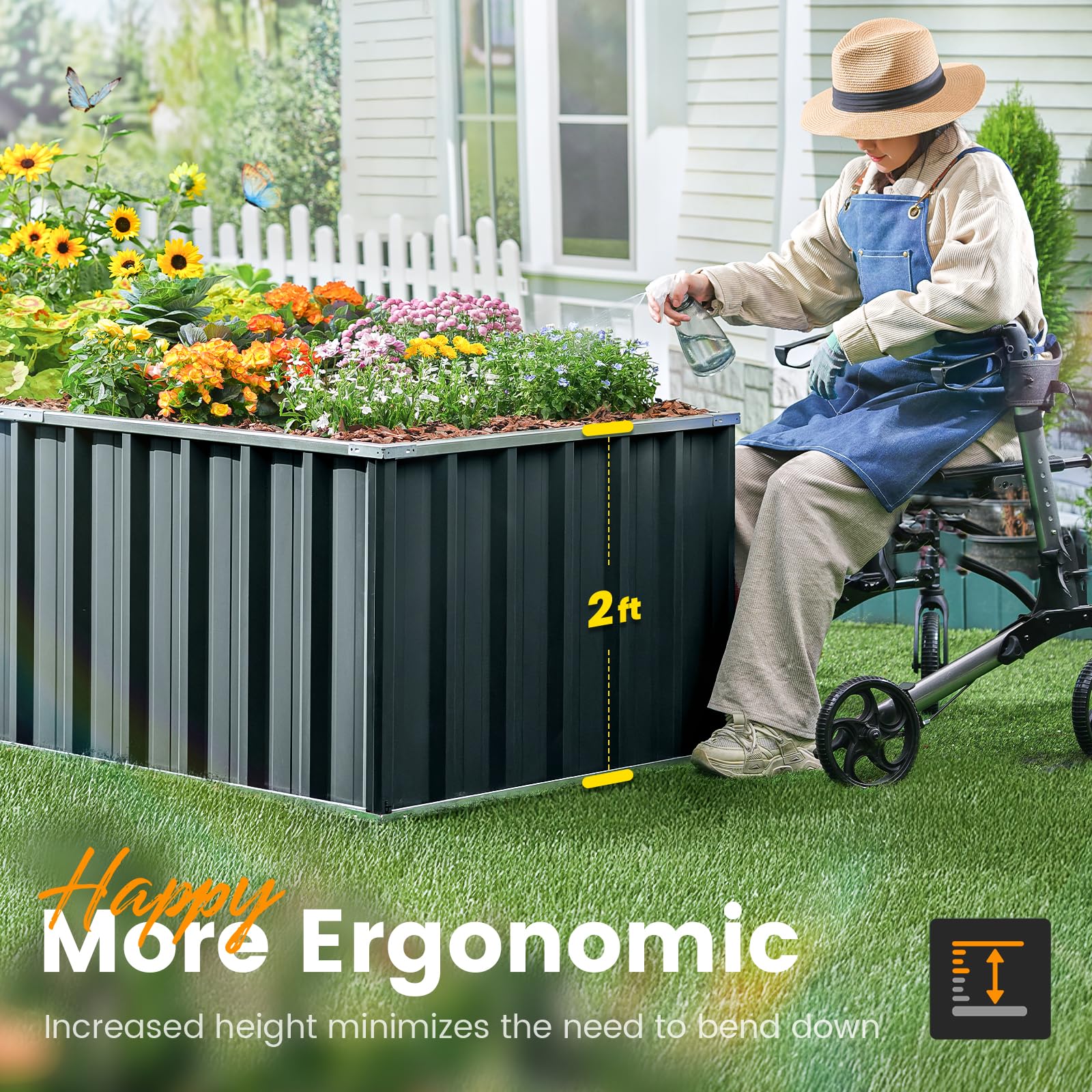 KING BIRD Raised Garden Bed 68" x 36" x 24" Heightened Galvanized Steel Metal Planter Box Outdoor for Deep-Rooted Vegetables, Flowers, Large Raised Bed Kit (Dark Grey)