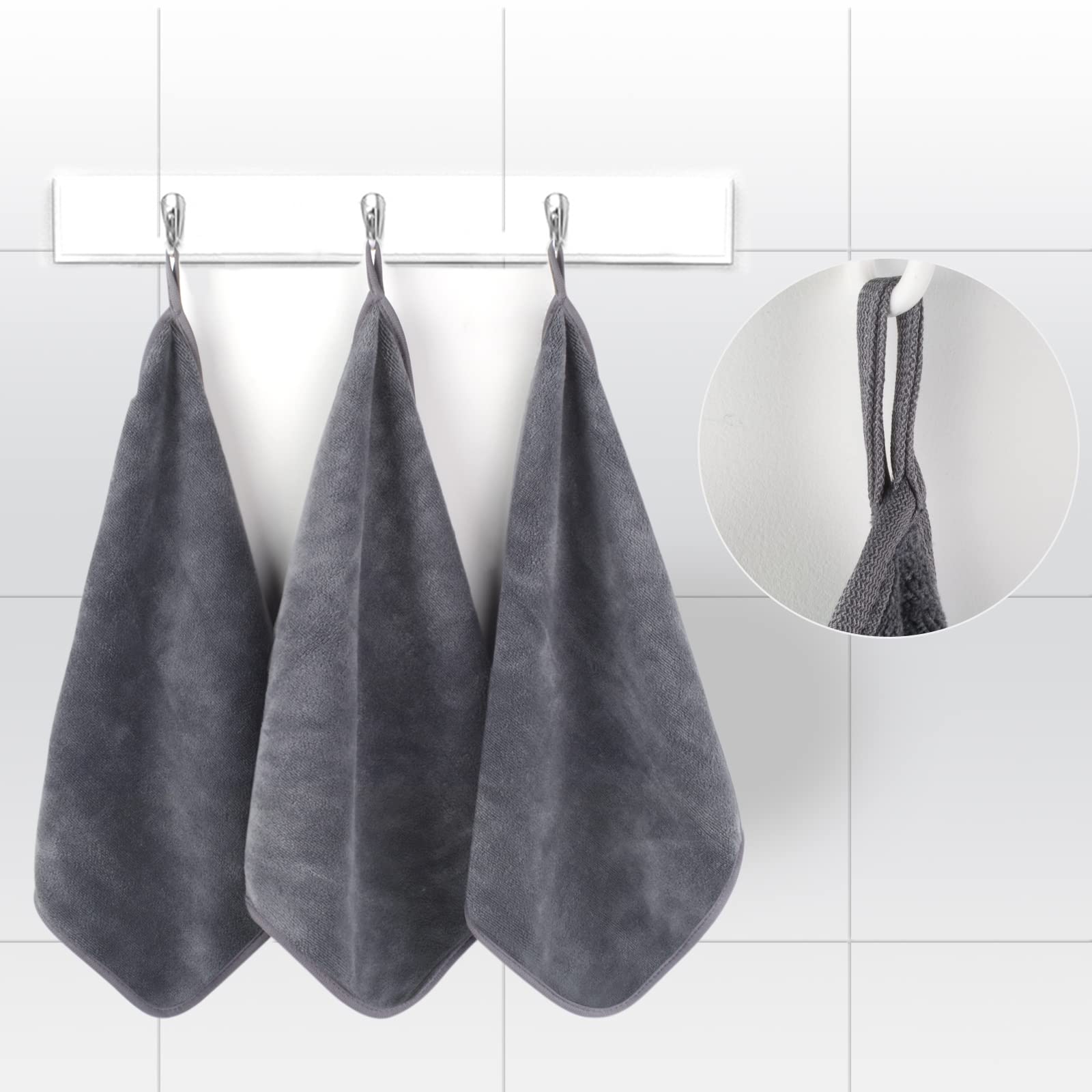 • PERFECT COLOR & USEFUL LOOP: Compared with the white or light colors, the gray color will not stain from makeup; with the convenient loop, you can hang your washcloths to dry