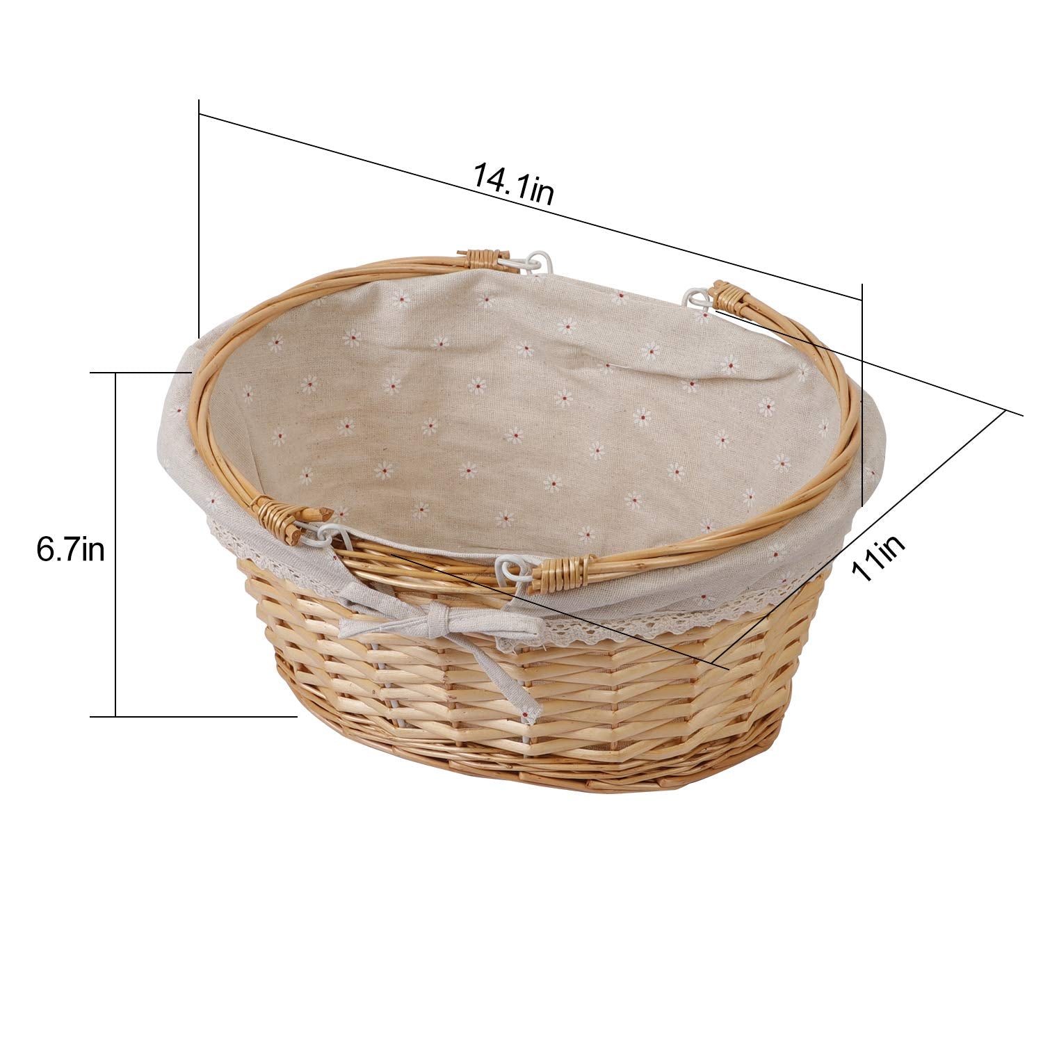 • THICKENED LINING - Cotton and linen lining, fresh and breathable, soft, comfortable and removable for cleaning. Our wicker basket protects the items inside the basket, even the food can be safely put in, a necessity for picnic.