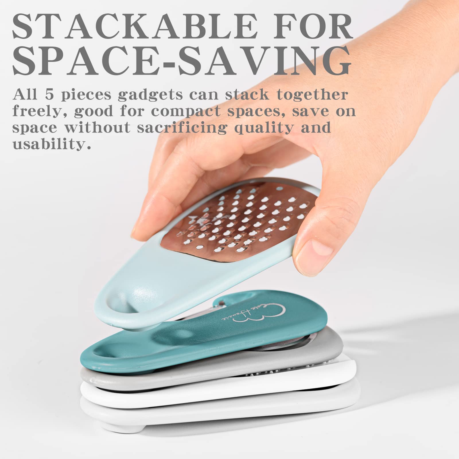 Kitchen Gadgets Set 5 Pieces, Stackable Cooking Tools Space Saving for Small Kitchen, Accessories for RV Camper Inside Dishwasher Safe (Blue)