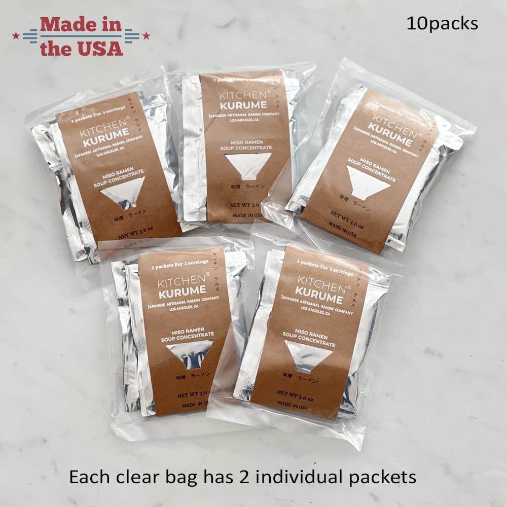 Kitchen Kurume® Miso Ramen Soup Concentrate (Pack of 10), Made in USA, Japanese Ramen Soup Base, 100% Natural Ingredients, No MSG, No Preservatives, Fresh Small Batch,15 Fl Oz
