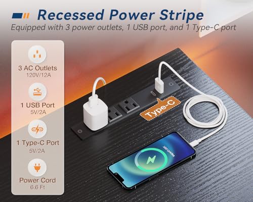 • 【Versatile Charging Solutions】: Charge your devices with ease using the built-in power strip featuring 3 AC outlets, 1 USB port, and 1 Type-C port, ensuring uninterrupted productivity throughout the day and hassle-free connectivity for your convenience.