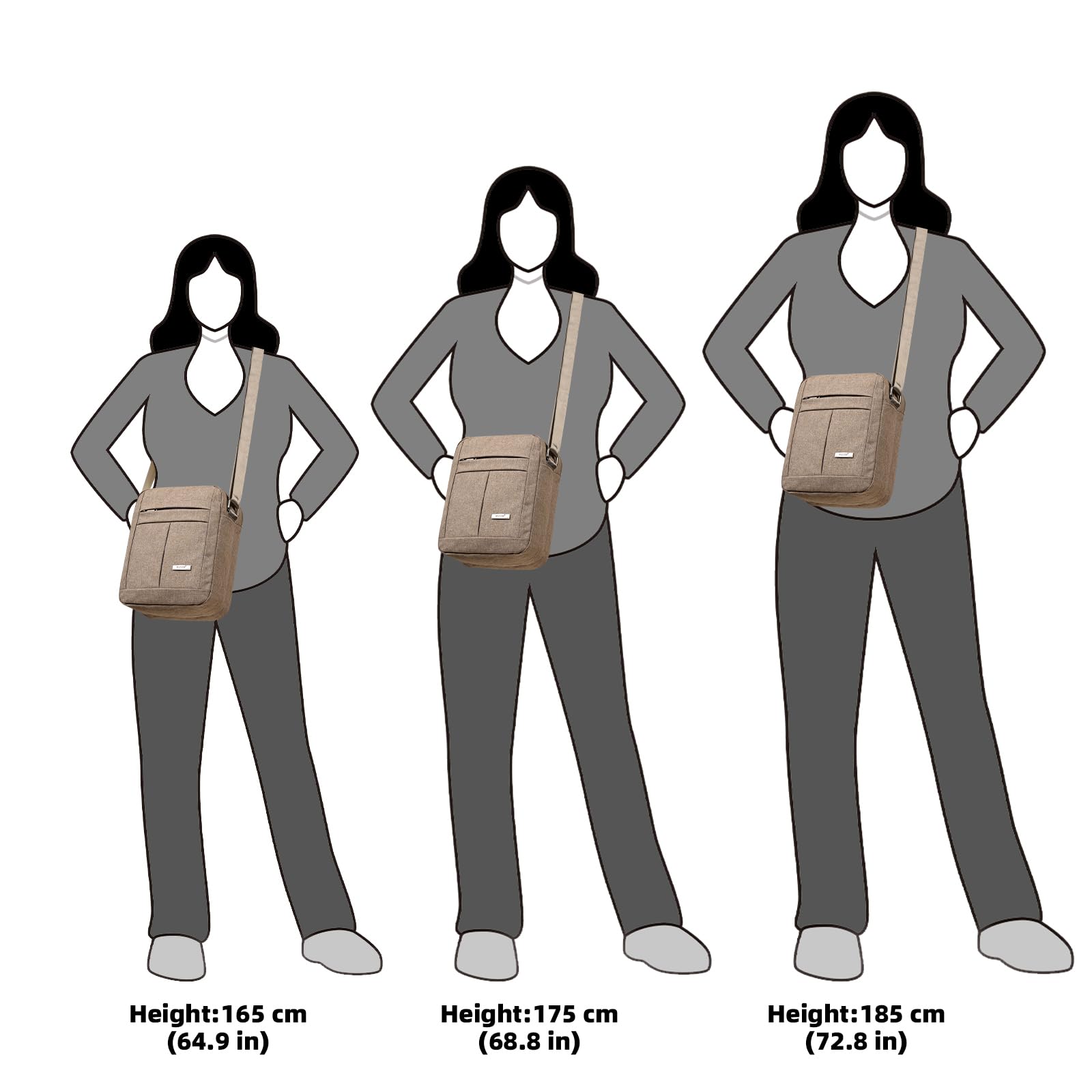 • [DIMENSION] 8.26*10.62*3.93 inch. Quality zippered main compartments make this shoulder bag large enough for your iPad, phone, power bank, wallet, notebook, sunglasses, small umbrella etc. Please check the bag size carefully before you place the order.