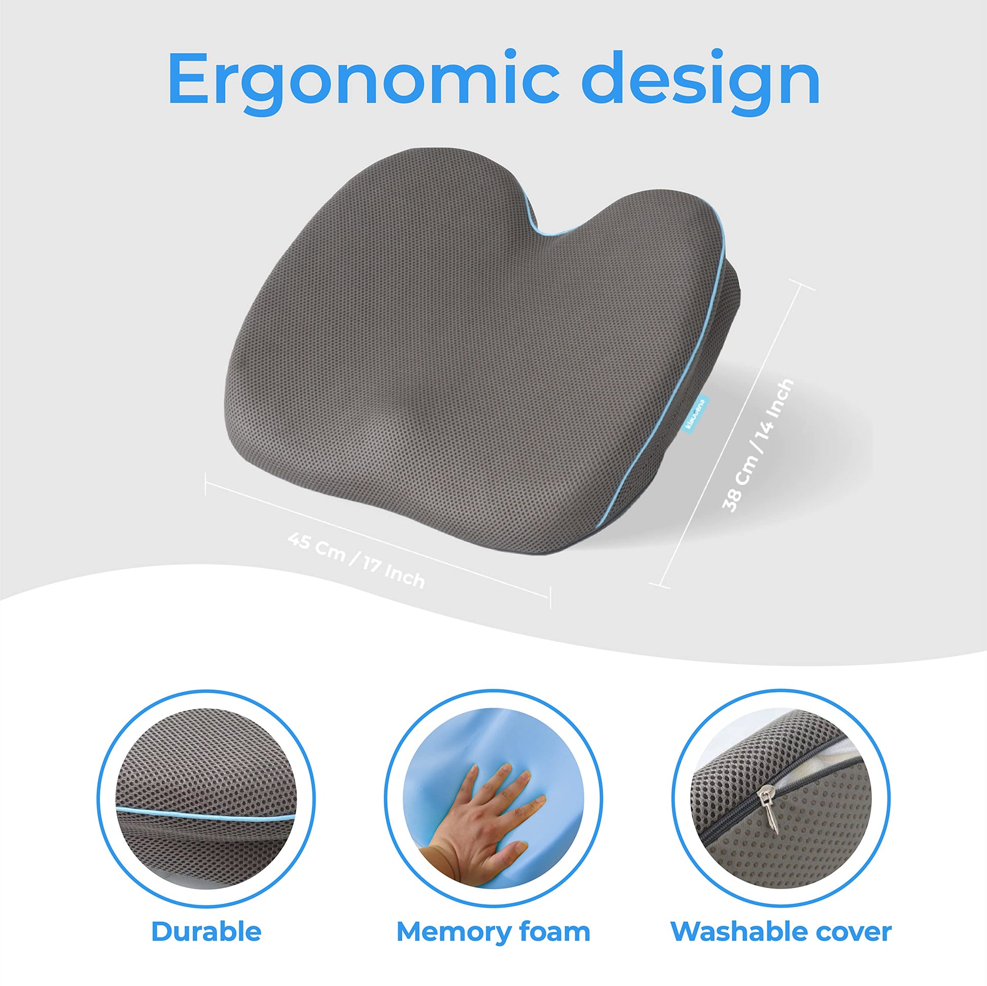 • Helps Relieve Pain: This seat cushion cradles your body for premium back support, easing pain from poor posture, sciatica, and tailbone issues. It's perfect for lumbar support and tailbone relief.