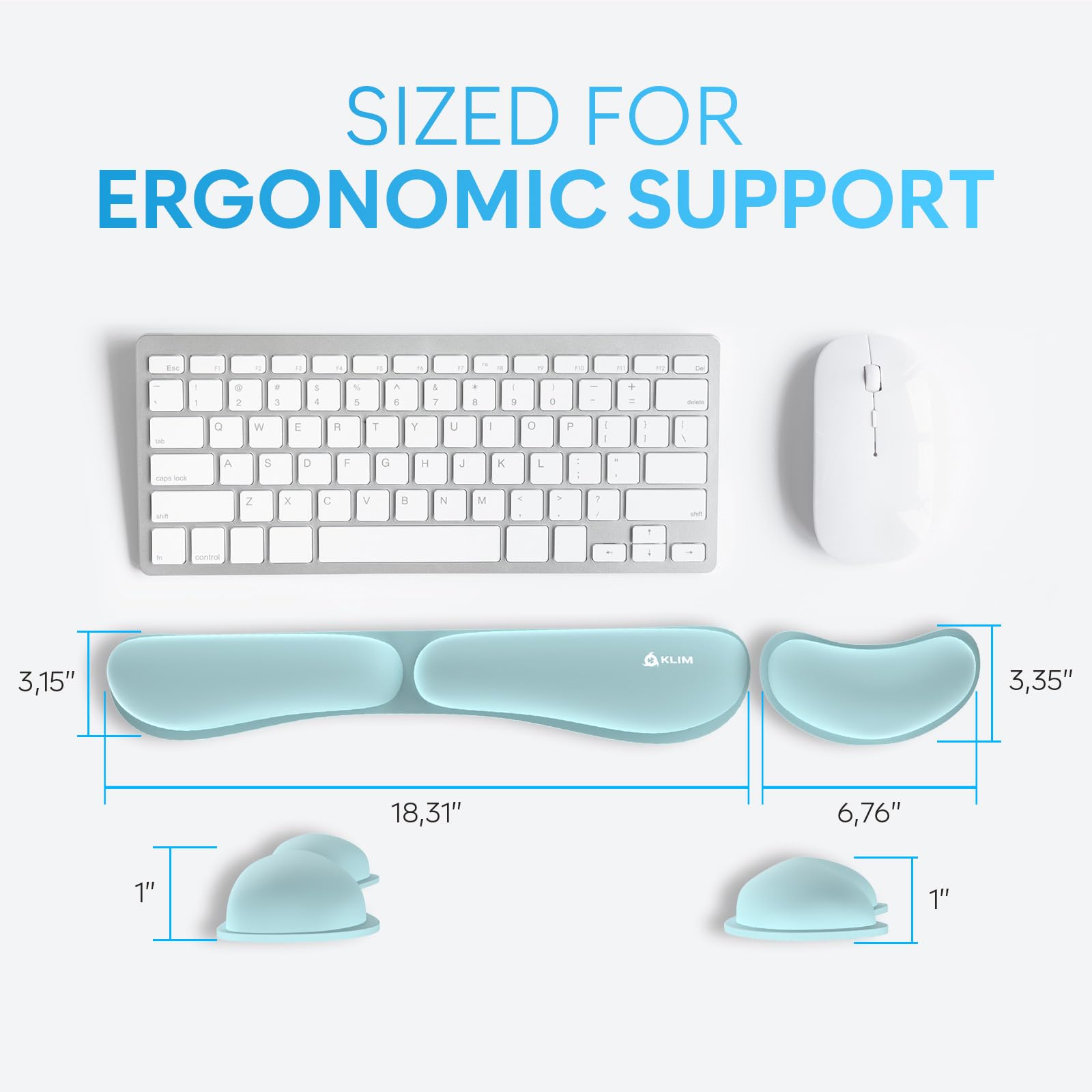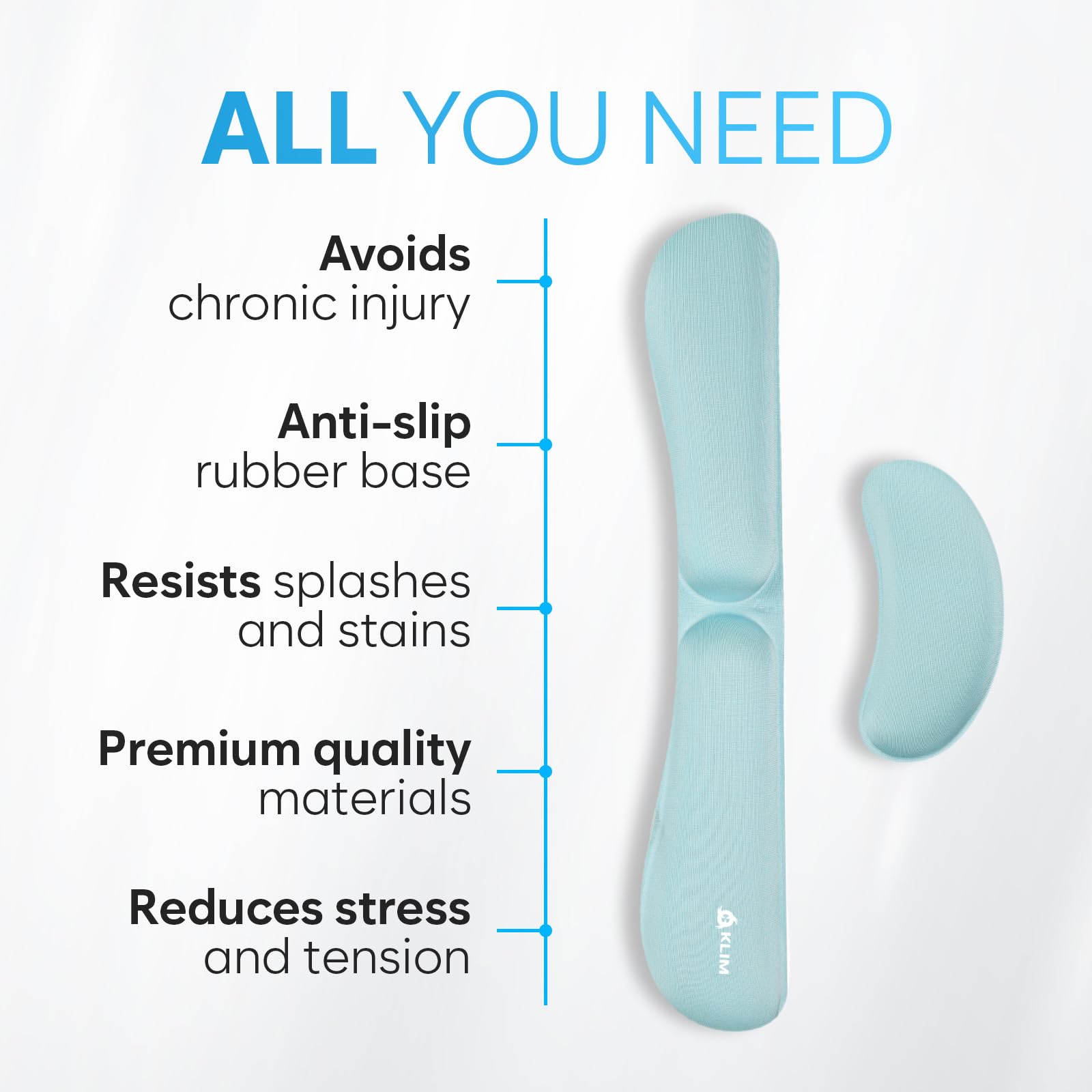 KLIM Mouse & Keyboard Wrist Rest Set - Silky Gel Memory Foam - Ergonomic Wrist Rest for Computer Keyboard, Wrist Pad for Keyboard + Wrist Rest for Mouse Gaming and Office - Pain Relief - Light Blue