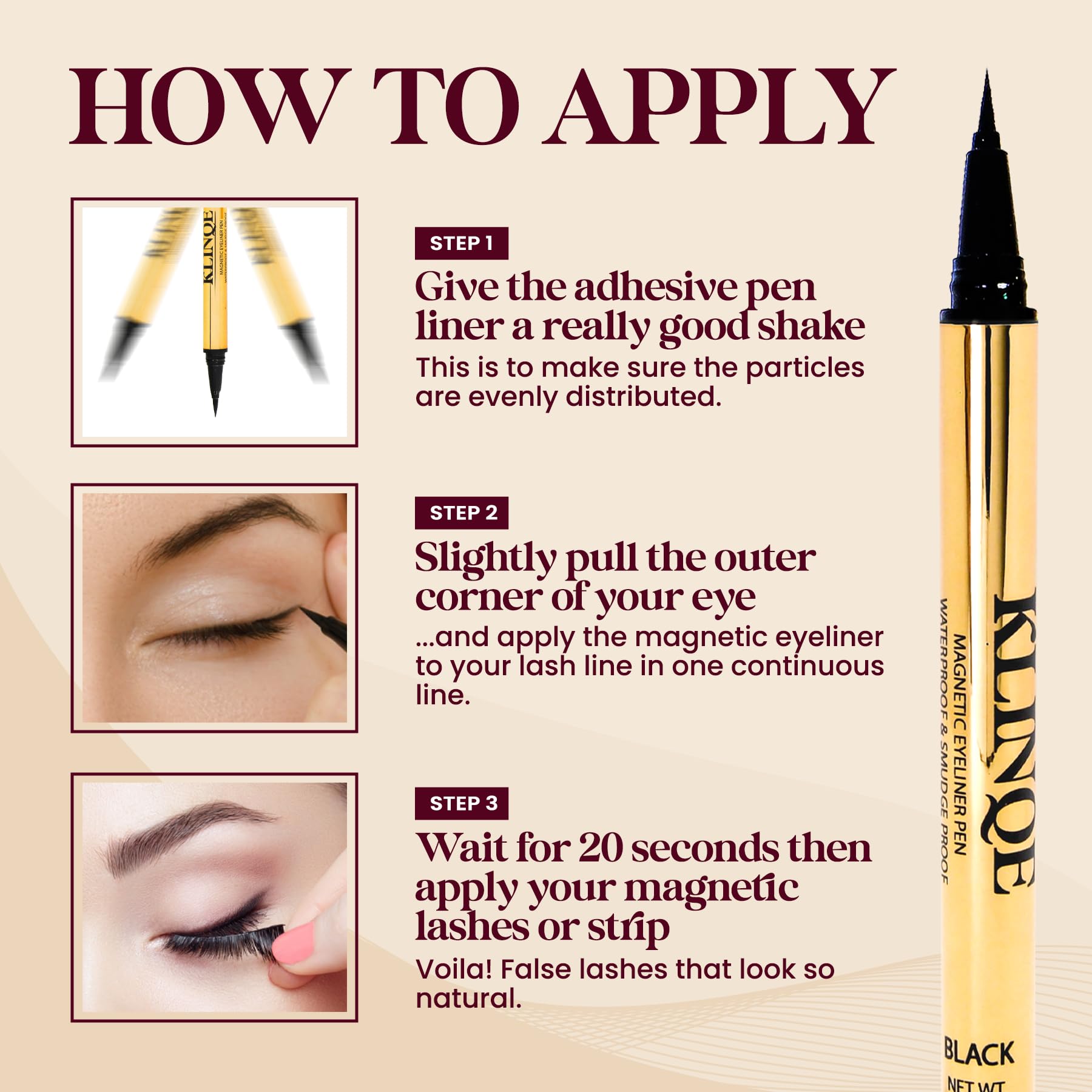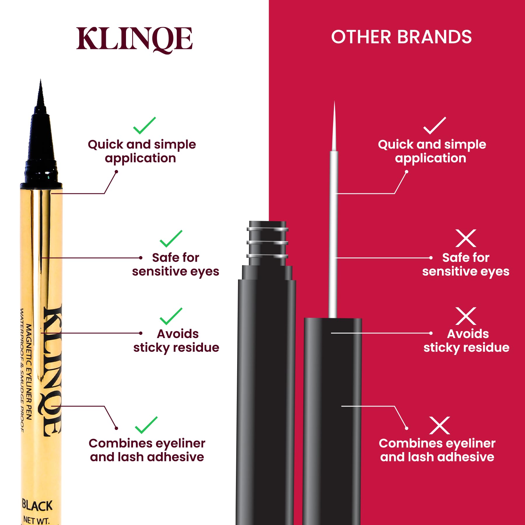 KLINQE Black Eyeliner Eyelash Glue Liner, Latex Free Lash Adhesive, Strong Hold, Glue Pen For Strip Lash, Magnetic Eyelashes, Smudge Proof, Eye Jewelry