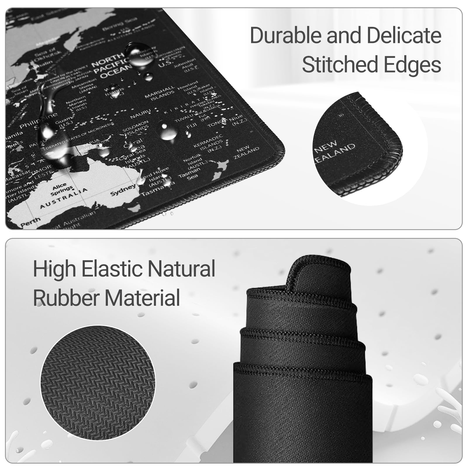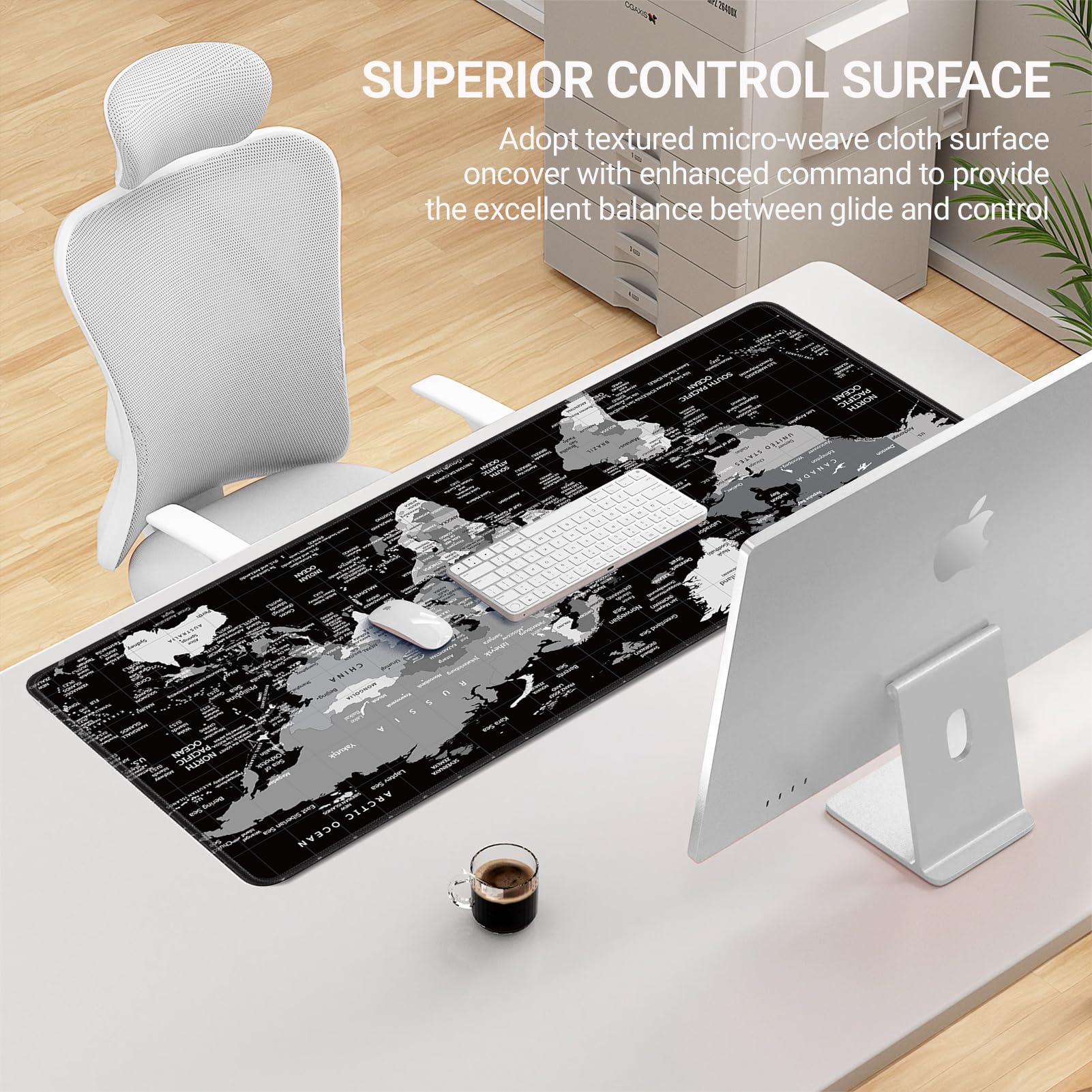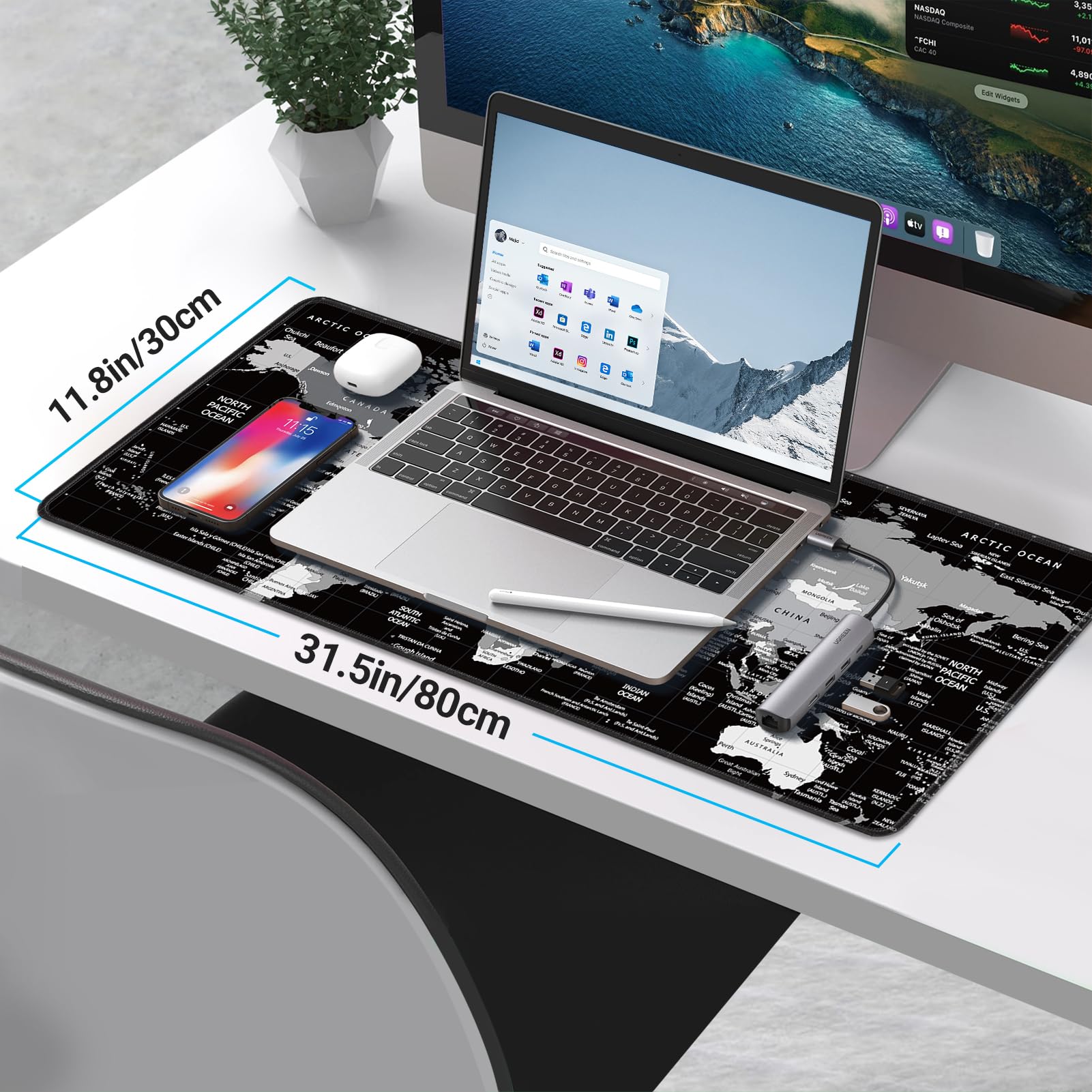 KMLVILE World Map Gaming Mouse Pad Large,XL Desk Pad Computer Game Desk Mat for Keyboard and Mouse with Non-Slip Base,Stitched Edges,Waterproof Mousepad for Gamer,Office &Home(Black,31.5" x 11.8")