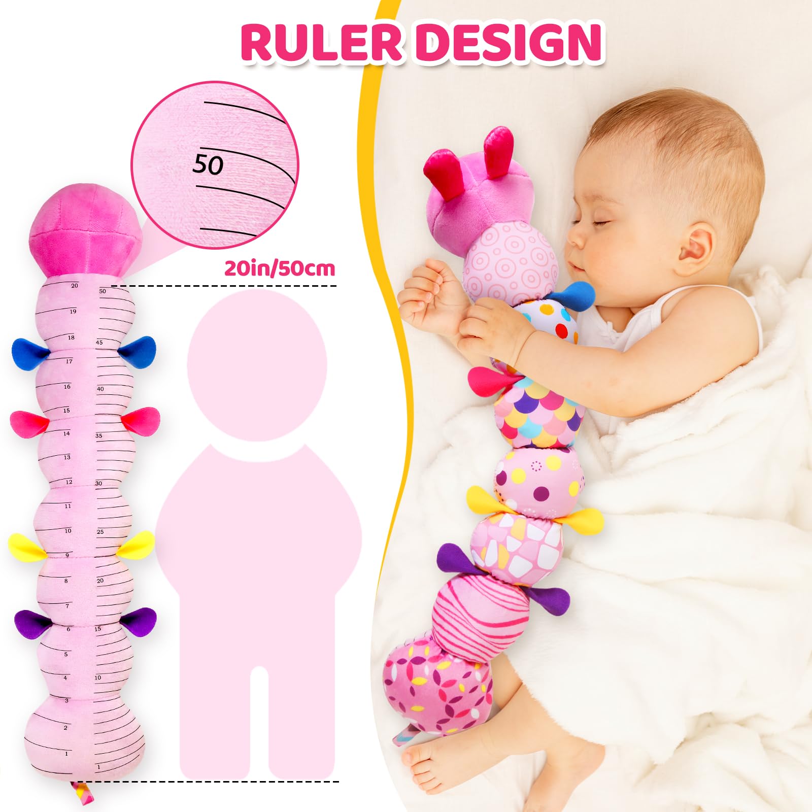 • Early Developmental Toys: Funny colors develop the visual ability and diverse textures build up the tactile sense. They could interest the baby and enrich the tummy time. The plush toy is designed for little hands, encourage babies to grasp & explore with ease. And we design a 20-inch ruler on the surface of this infant caterpillar plush's tummy. Parents can apply it to measure baby‘s height and record his/her growing.