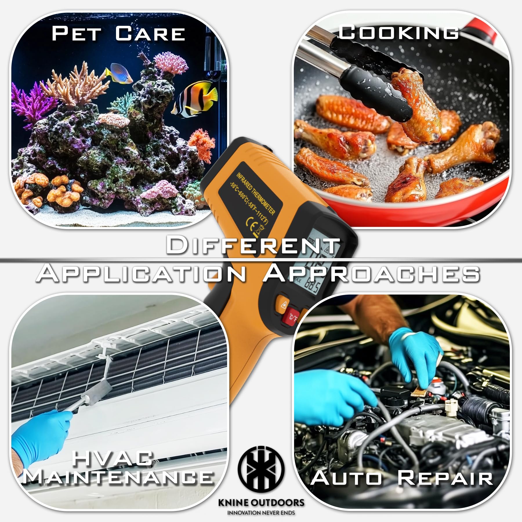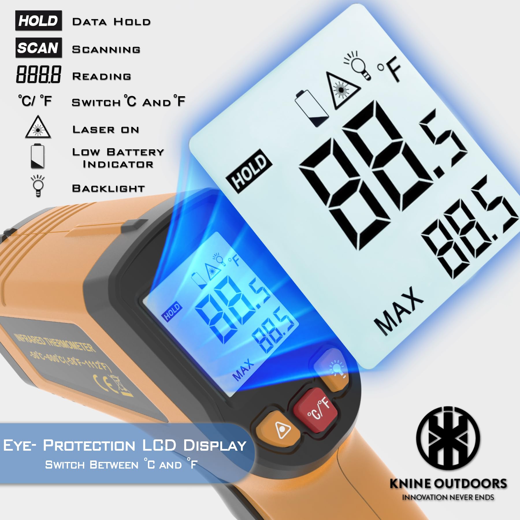 KNINE OUTDOORS Infrared Thermometer Laser Temperature Gun, -58℉ to 1112℉, Single Laser Targeting, Distance to Spot Ratio 12:1, for Cooking, Oven and Meat (Orange)