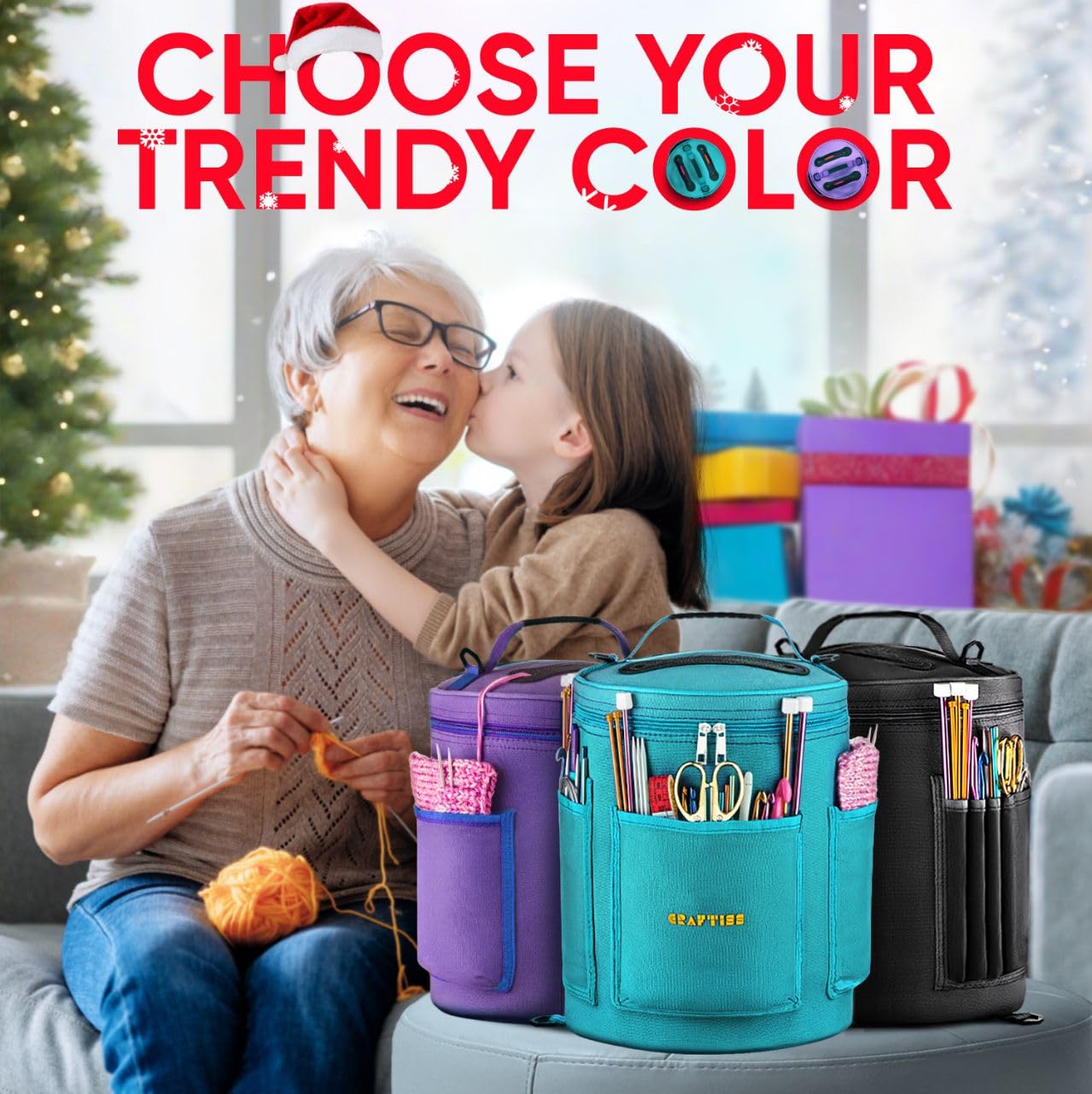 • KEEP EVERYTHING ORGANIZED – The yarn storage bag comes with compartments and pockets specifically designed for your crochet accessories, ensuring everything is easy to find.