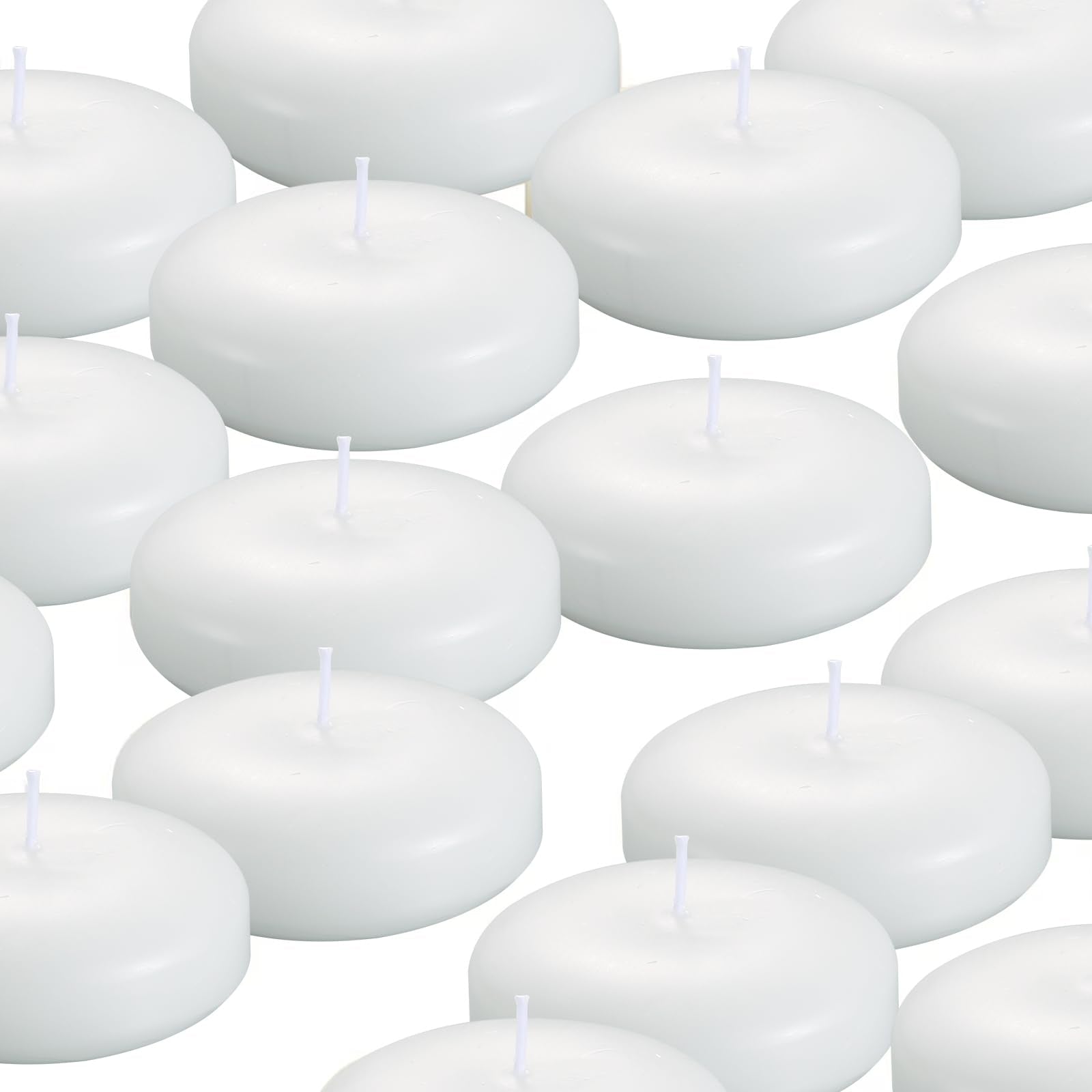 KNOURT 36 Pack Floating Candles, 3” White Unscented Dripless Wax Burning Candles, for Weddings, Party, Cylinder Vases, and Home Decorations