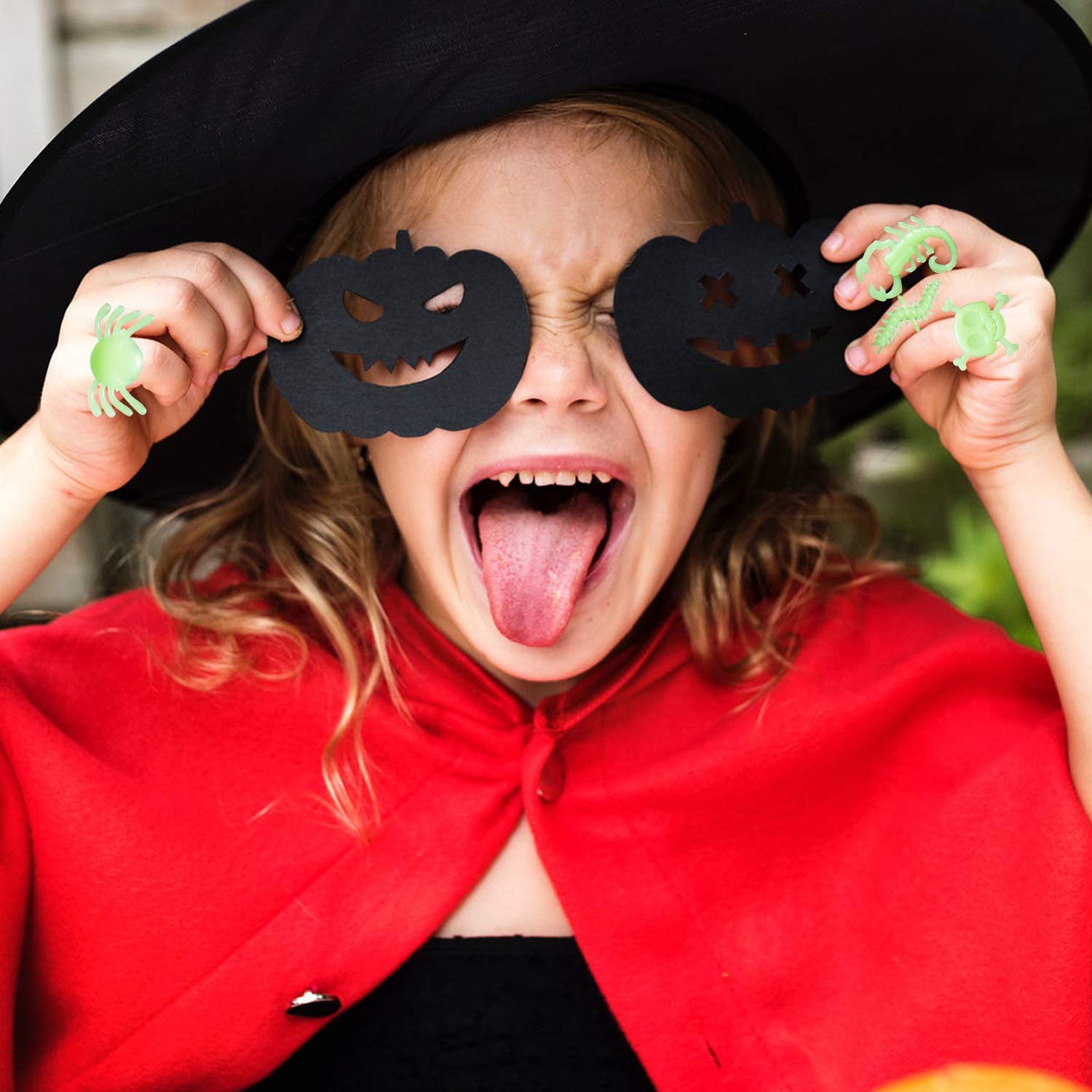 • PERFECT FOR HALLOWEEN: Glow in the night spider rings are kids’ love. They’re perfect for Halloween party favors and supplies, Halloween cupcake decorations, Goody bag filler and bug themed party decorations