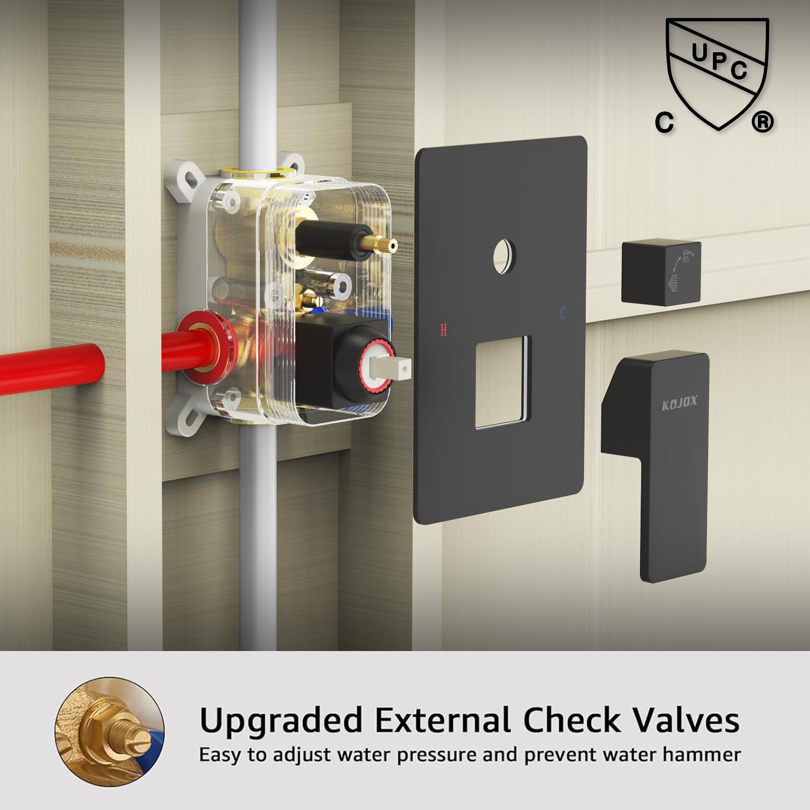 KOJOX Shower System with High Pressure 10'' Rainfall Shower Head, Handheld Shower head and Shower Faucet Trim valve, Bathroom Luxury Rain Mixer Shower Combo Set Wall Mounted Matte Black