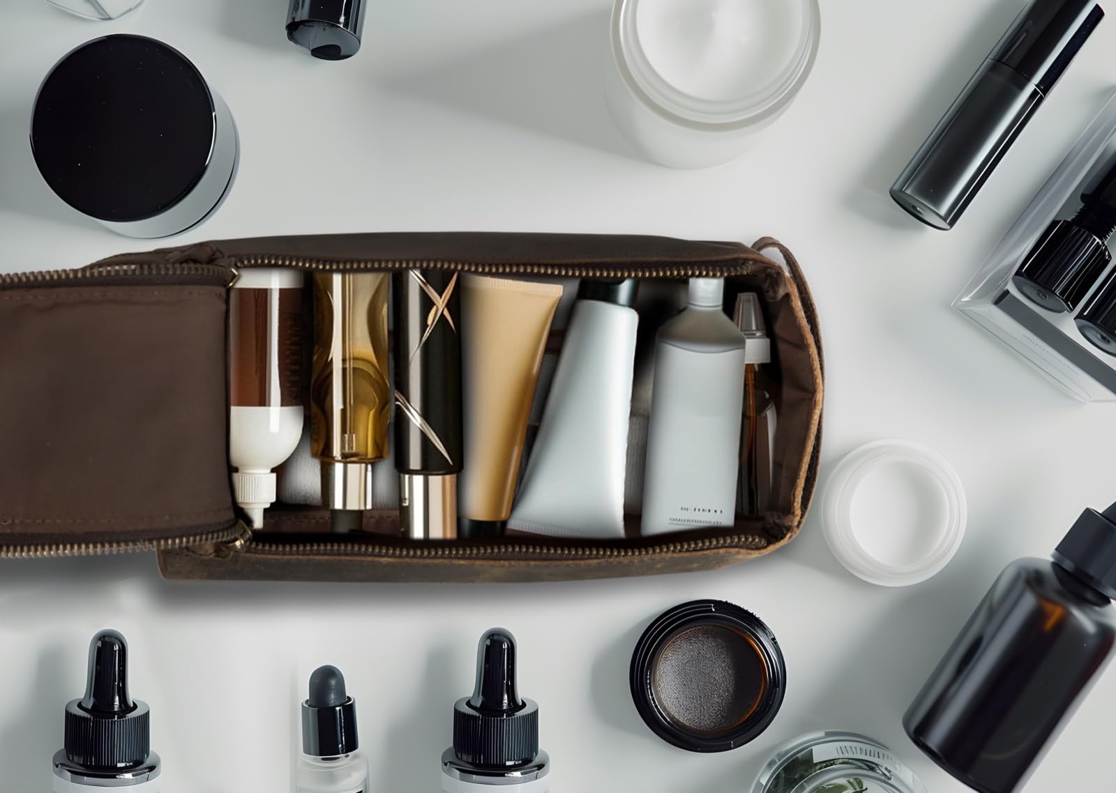 KomalC Premium Buffalo Leather Unisex Toiletry Bag Travel Dopp Kit