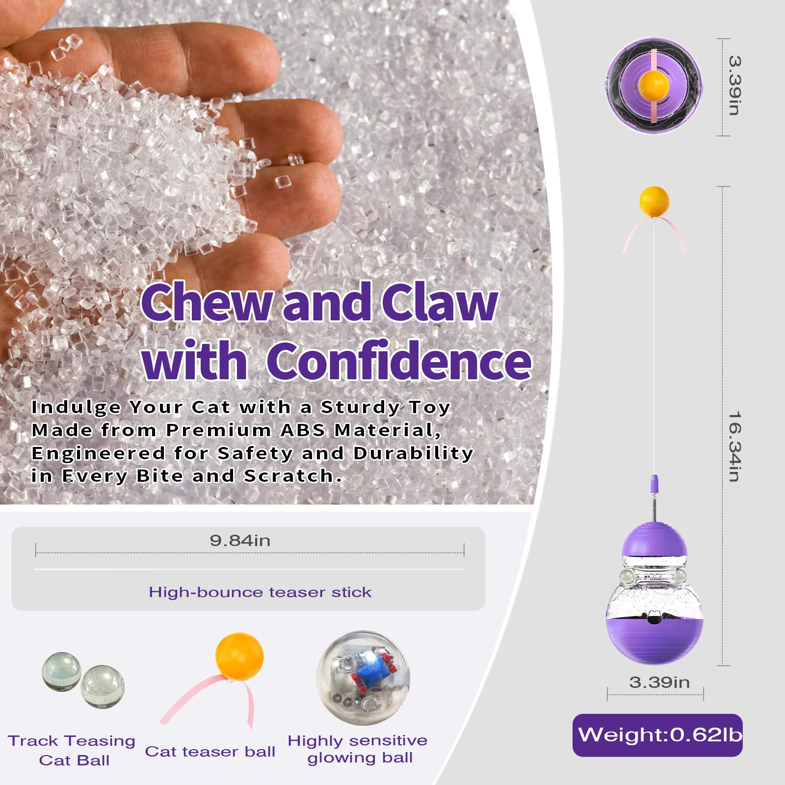 • Dynamic Play: Engage your cat with a tumbler toy featuring a teasing wand and a captivating glowing ball for hours of fun.