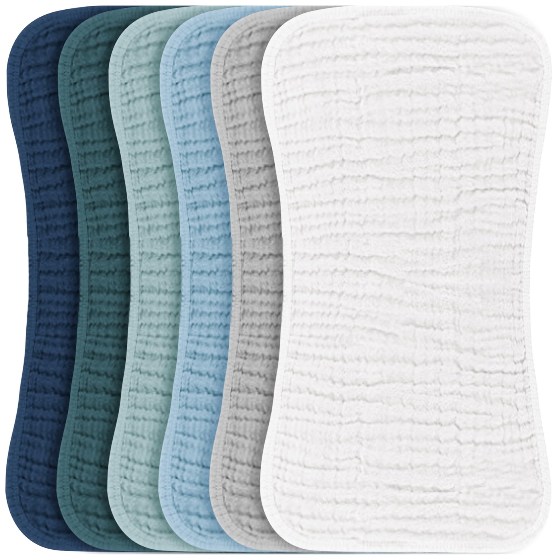 Konssy Muslin Baby Burp Cloths Sets for Unisex- 6 Pack Large 100% Cotton Burping Clothes for Newborn, Baby Girls and Boys