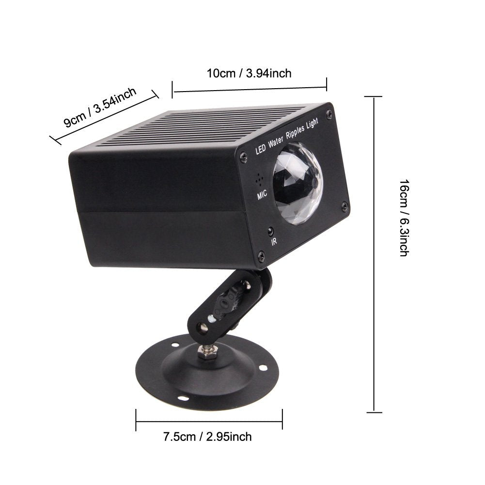 • Easy To Use: Flexible stand, support light on the floor or table, or hanging on a truss or wall, then adjust the distance, direction and angle for the best water ripple effect. The range of light is related to the distance the light to the surface. The best distance is about 5-15 feet, which can cover 100 square feet. Just plug and instant on, then use the remote to cycle through light effect