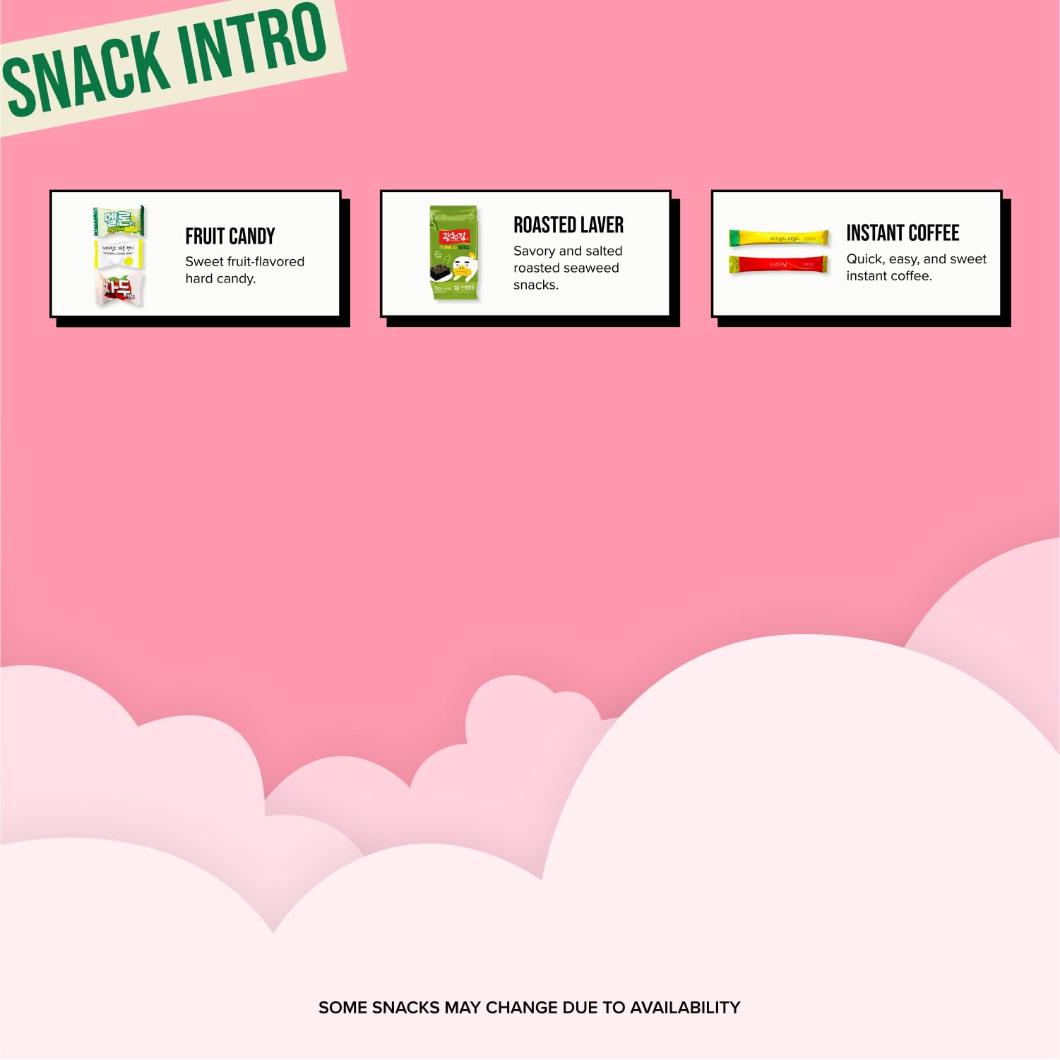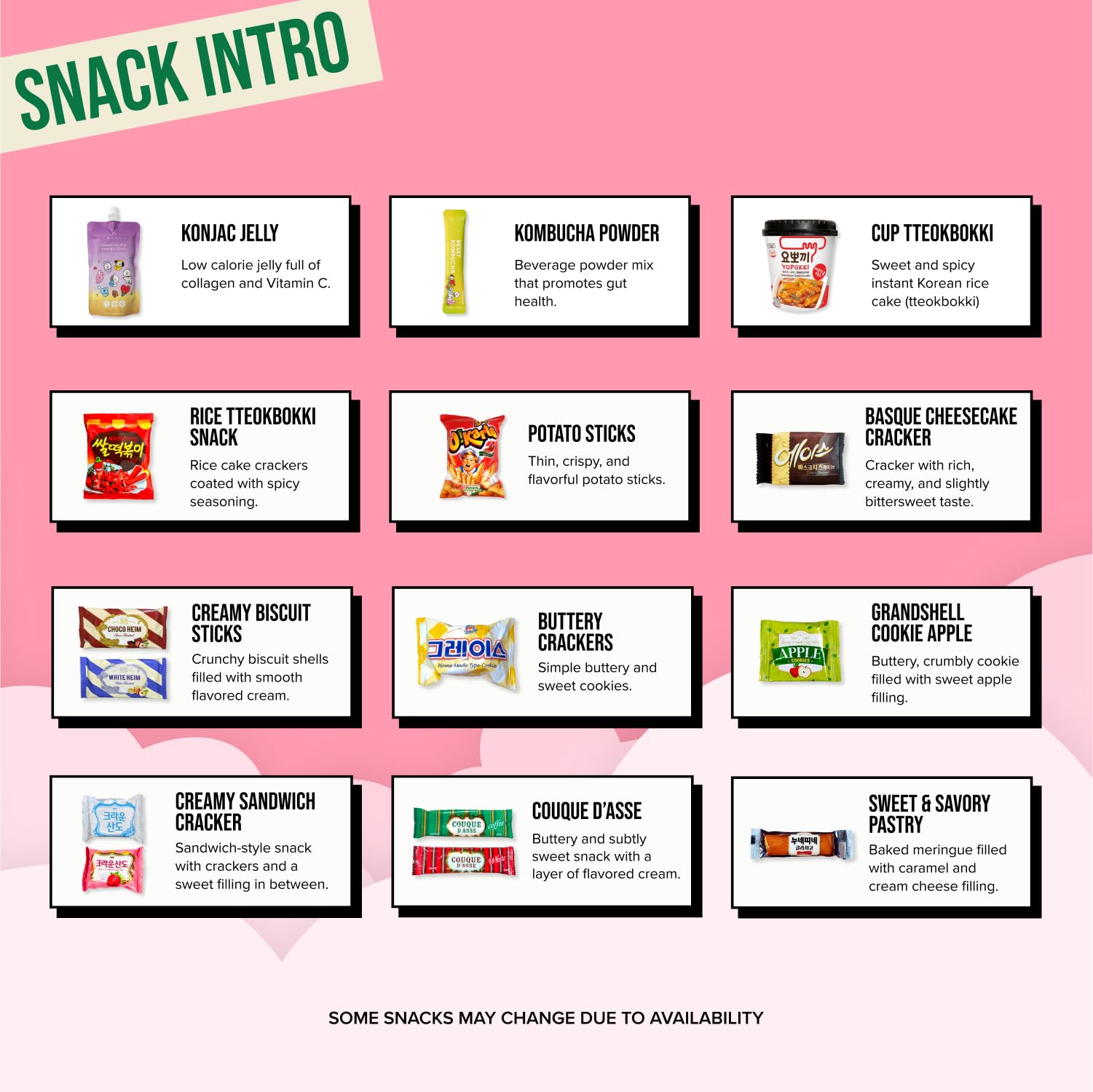 • THOUGHTFULLY CURATED KOREAN SNACKS: Each snack box is thoughtfully put together using high-quality items from Korea's top snack brands to provide a well-rounded snacking experience intended to help you explore the rich flavors and heritage of Korean cuisine.