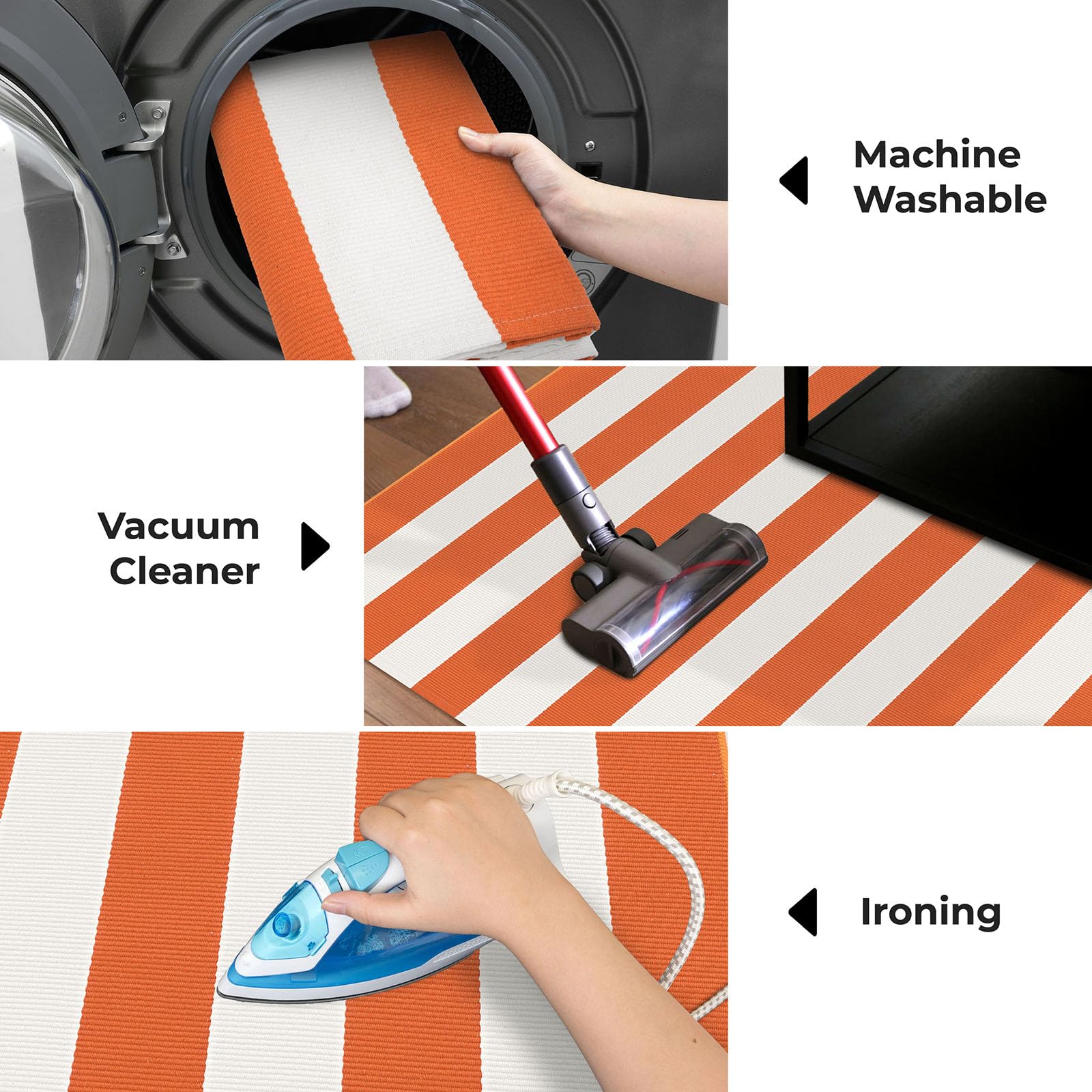 • Indoor Outdoor Rug: Suitable for both indoor and outdoor spaces. The orange rug is resistant to sunlight, keeping its vibrant colors intact. Ideal for entryways, bedrooms, patios, kitchens, and more, adding style to any area