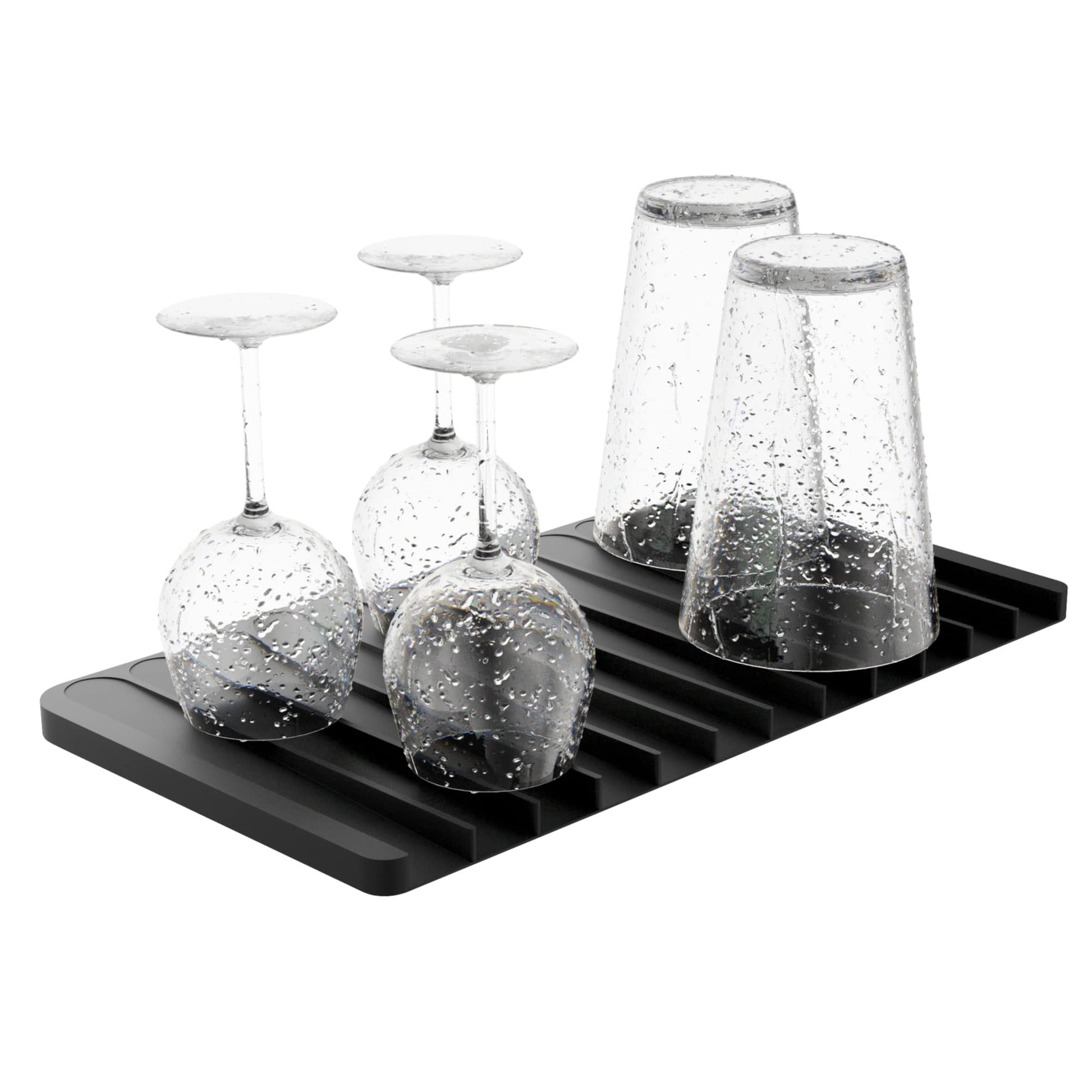 • SELF-DRAINING DESIGN: Sloped drainage grooves channel water into the sink, protecting your countertop from water damage – FASTER DRYING: Raised silicone ridges increase air circulation so that wet items dry faster
