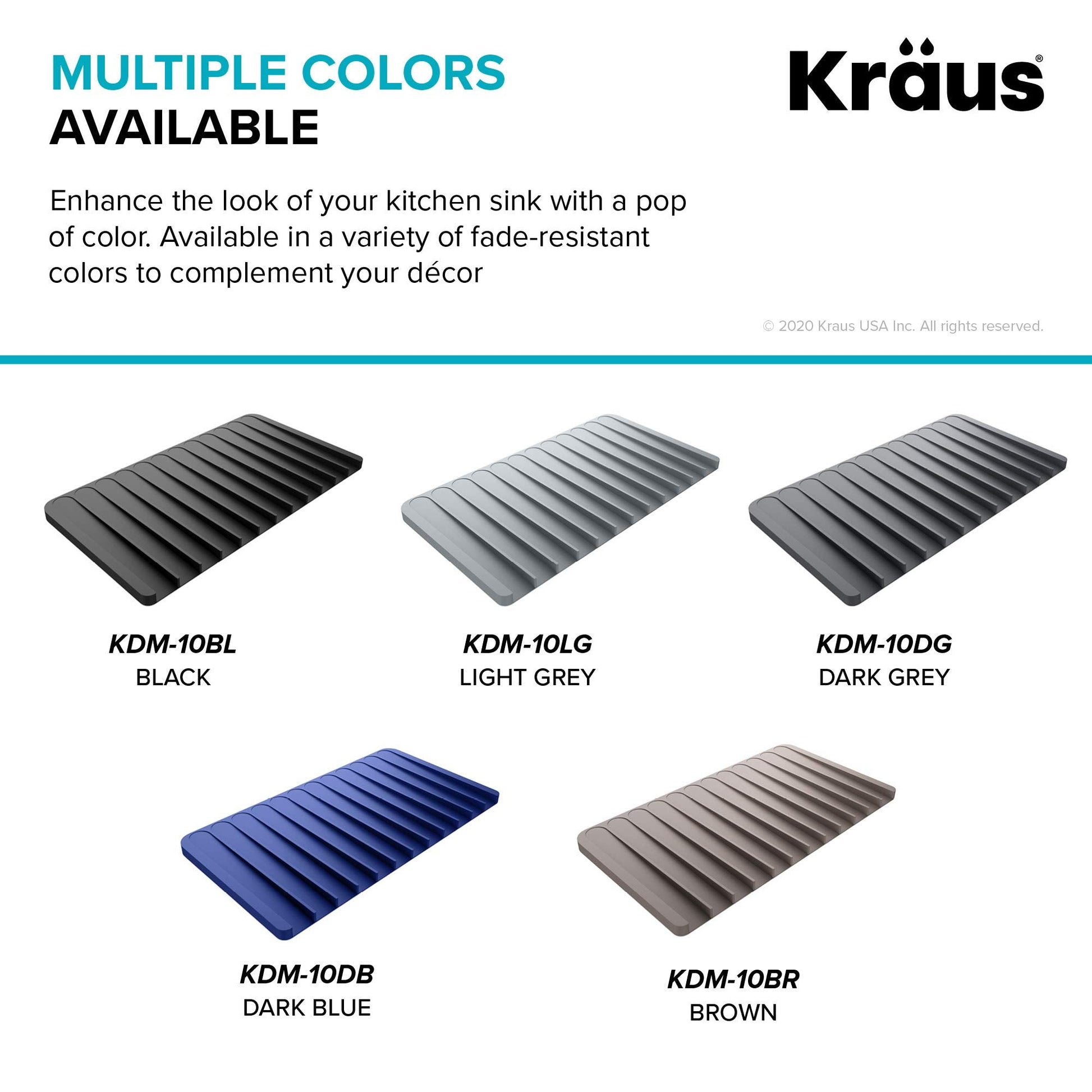 Protect your kitchen counters while drying your dishes with the KRAUS Self-Draining Silicone Dish Drying Mat. The smart design incorporates sloped drainage grooves that channel water directly into the sink, protecting your kitchen counters from water damage. Raised silicone ridges increase air circulation, allowing wet items to dry more quickly. Made with durable BPA-free silicone, this 100 percent food-safe mat is flexible enough to bend without breaking and easily stands up to everyday use. A non-slip design keeps it from sliding on the counter and prevents items from slipping, with an optimized angle engineered to prevent fragile stemware from tipping over. Heat-resistant up to 400 degrees Fahrenheit for use as a trivet or coaster to protect your countertops from hot items, or as a cooling rack for baked goods straight out of the oven. Use this multi-functional accessory in the kitchen to air-dry pots, pans, and cutlery, or in the bathroom to protect your vanity countertops from cosmetics and hot hair styling tools. Waterproof construction allows you to simply wipe spills from the mat’s surface, or throw it into the dishwasher for easy cleaning. The color-stable stain-resistant material will not fade over time, with multiple color options available to complement your kitchen or bathroom sink. Perfect for smaller kitchens or prep areas with limited counter space, the compact design fits into any drawer or cabinet for convenient storage.