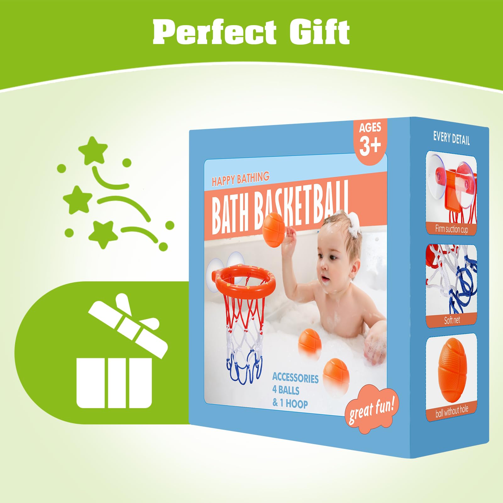 • 【Bath Basketball Hoop】Our bathtub basketball set comes with 3 no hole balls,the kids bathtub basketball hoop comes with two sturdy suction cups that easily attach to any smooth surfaces.