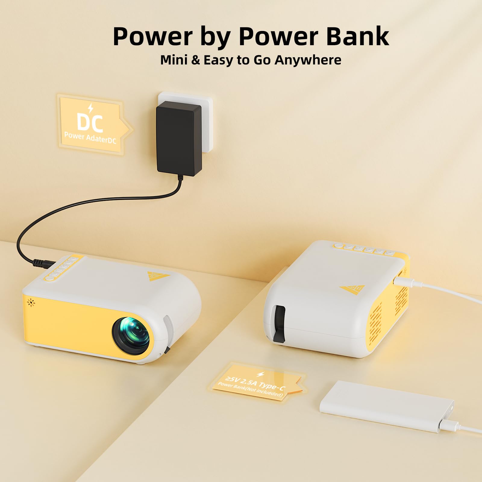 • 【Versatile Connectivity & Easy Powered】Equipped with multiple ports including Type-C,USB, HDMI, and Audio, this projector easily links up with your smartphone, TV Stick, PS4, PS5, tablet, or laptop for seamless playback of videos, TV series, sports events, and games. This portable mini projector could be powered by Power Bank(Type-C ≥5V 2.5A) also. (Note: Due to HDCP copyright, this mini projector doesn't support Netflix,Amazon Prime,Disney+ and Hulu,but you could use Fire-stick or Roku to play copyright video)