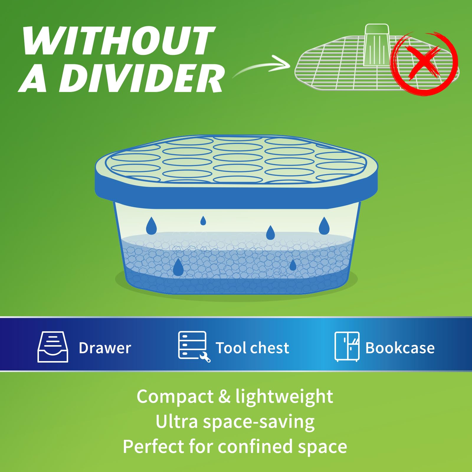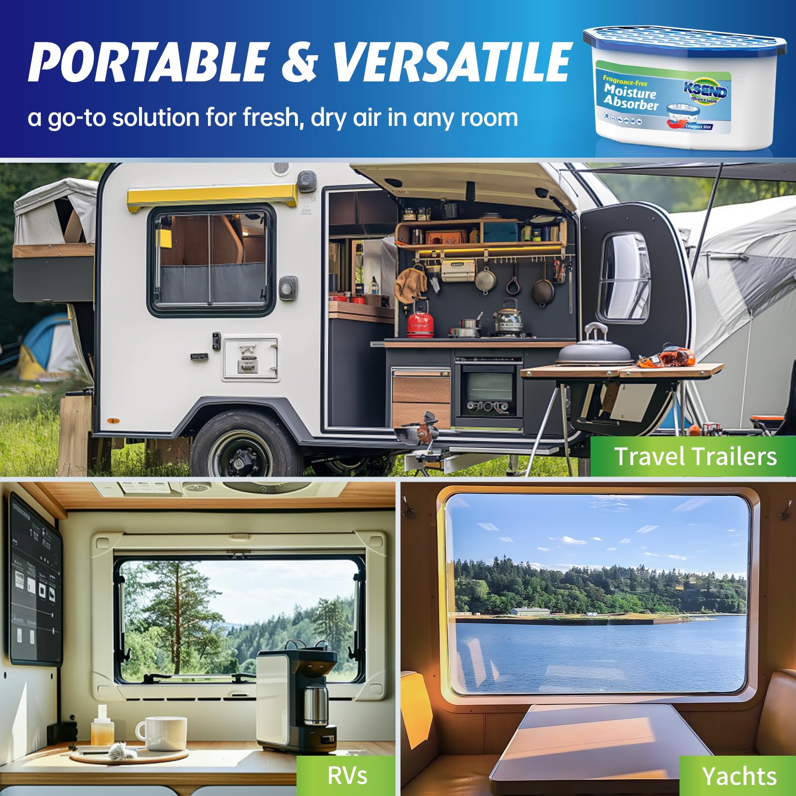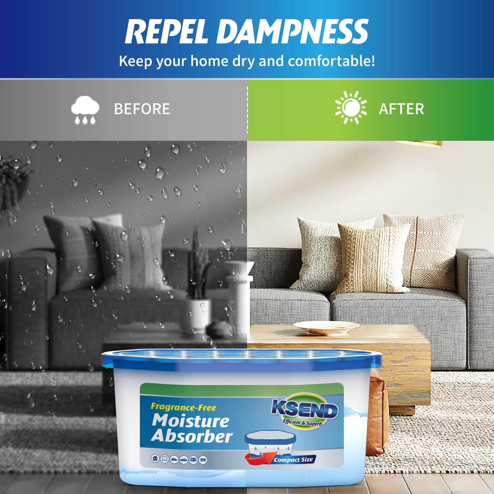 • LEAKPROOF DESIGN: Ksend moisture absorbers for rooms are equipped with a unique moisture-locking paper design. This innovative feature ensures that even if the boxes are accidentally overturned, the collected water will remain securely contained. You can confidently place them anywhere without worrying about water leakage.