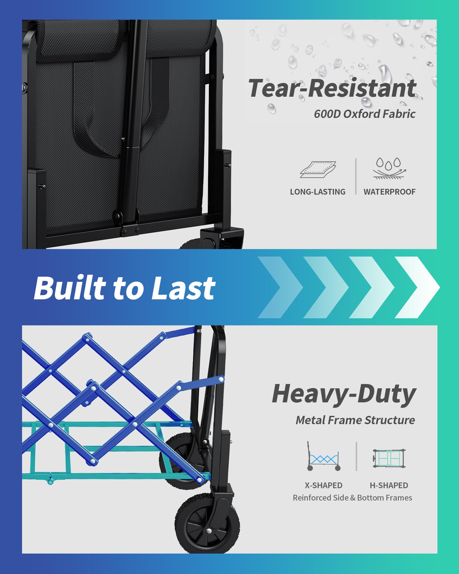• STORAGE CAPACITY: The Ksend wagon cart offers a interior with an impressive 80L capacity, perfect for carrying your camping gear, picnic supplies, groceries, etc. It handles loads up to 200LBS without compromising on stability. This makes the cart with wheels an essential companion for any outdoor activity.