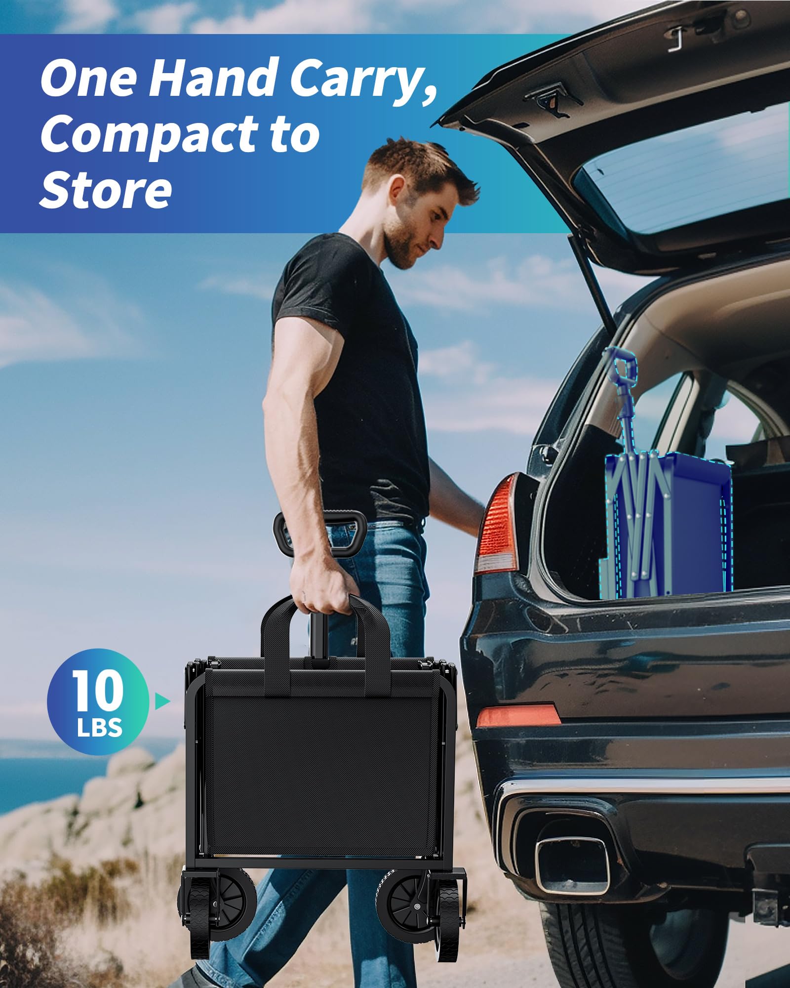 • FOLDABLE & SPACE-SAVING: Ksend space-saving collapsible cart can easily fold into a compact size for simple storage in car trunks, closets, or garages. The user-friendly folding design allows for quick setup and pack-away without tools. With portable handles and a weight of just 10LBS, the cart is ready to assist you wherever you go, making it highly convenient and efficient.