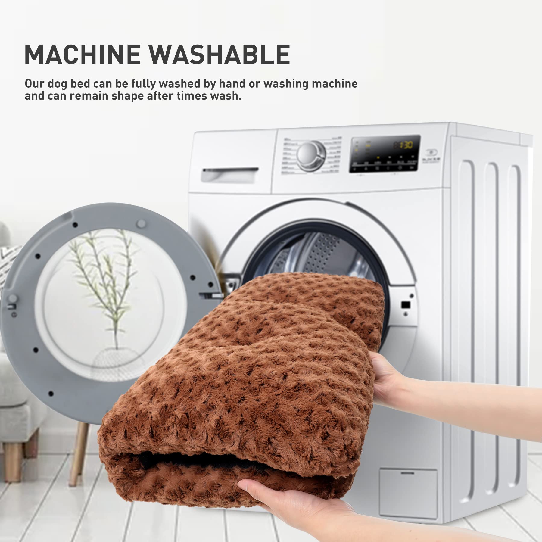 KSIIA Washable Dog Bed Deluxe Plush Dog Crate Beds Comfy Kennel Pad Anti-Slip Pet Sleeping Mat for Large, Jumbo, Medium, Small Dogs Breeds, 23" x 18", Brown