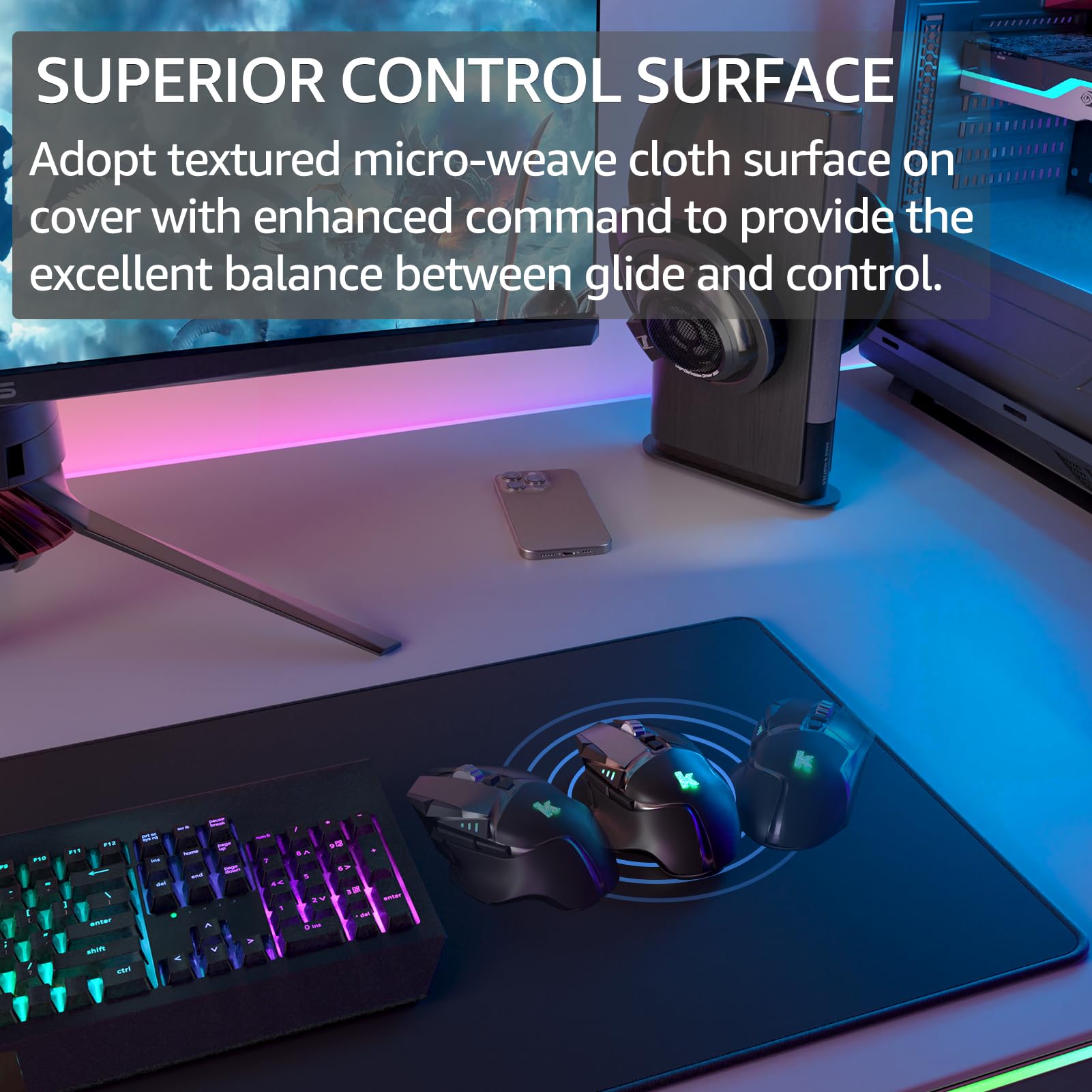 • Superior Control Surface: Ktrio extended mouse mat adopts textured micro-weave cloth surface on cover with enhanced command to provide the excellent balance between glide and control. The performance-tuned surface optimizes mouse tracking accuracy for both optical and laser sensors.