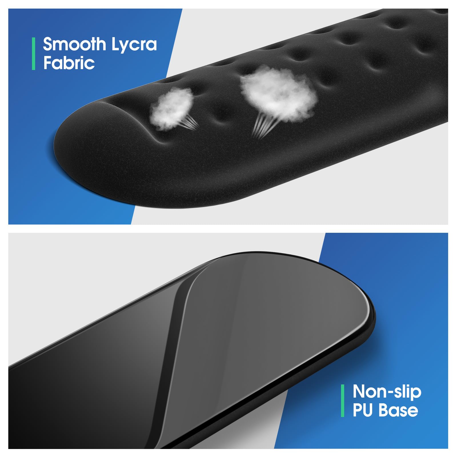 • Non-slip PU Base: The high-quality PU base has a solid grip to prevent the keyboard wrist rest pad from sliding or unnecessary movement, ensuring that the wrist rest for computer keyboard stays in place.