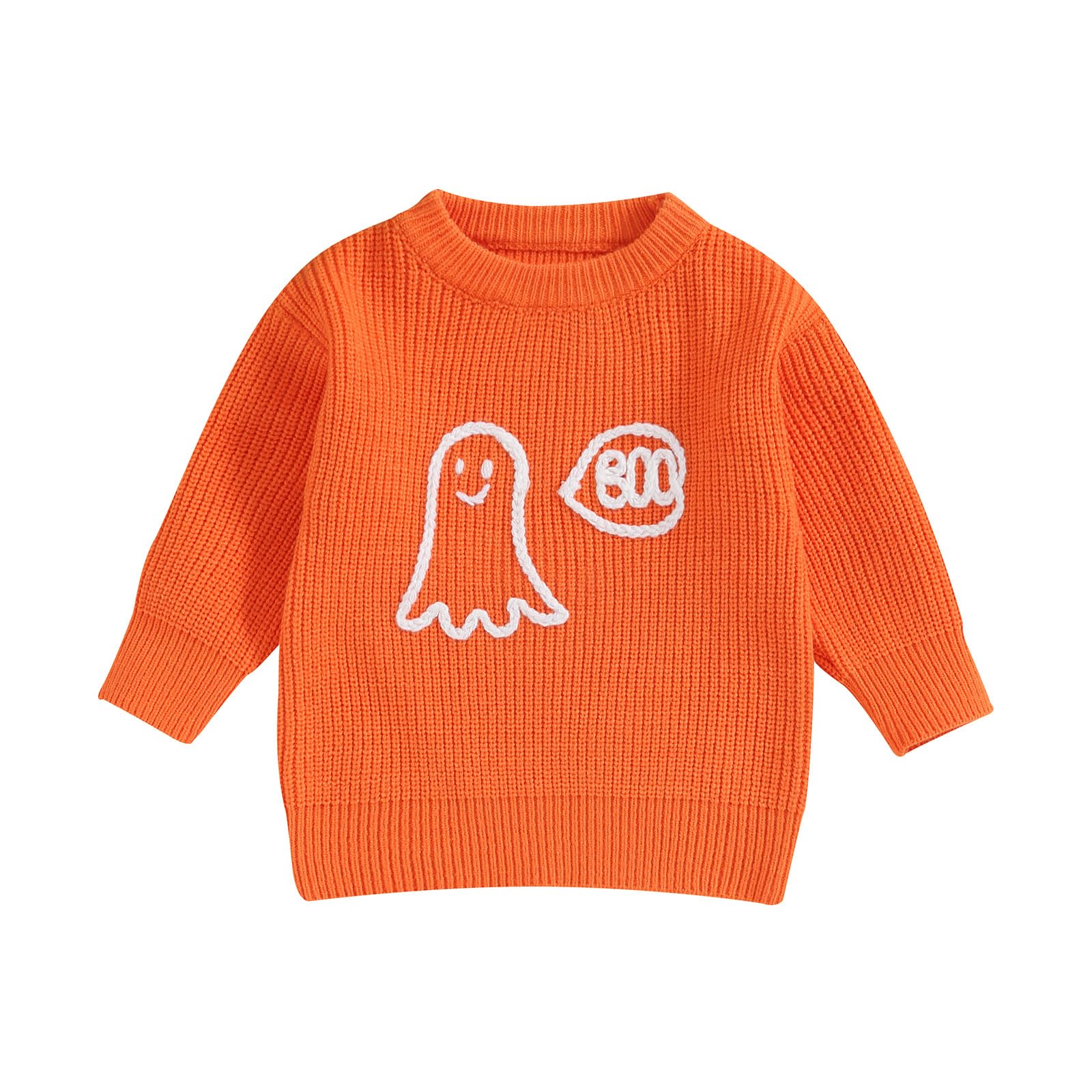 Kuriozud Toddler Baby Boy Girl Halloween Outfit Knit Ghost Boo Pullover Sweater Crewneck Sweatshirt Soft Warm Fall Winter Clothes (Ghost Orange,5-6 Years)