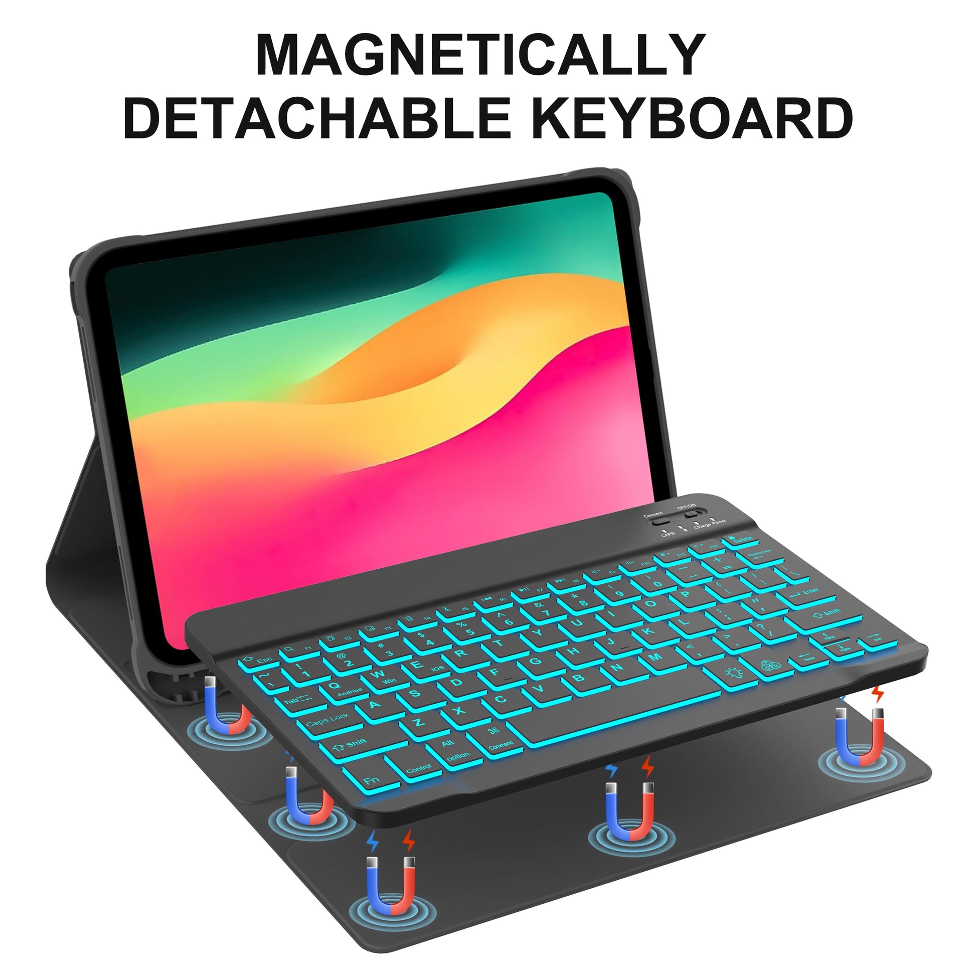 KVAGO for iPad 11th 10th Generation Case with Keyboard, 7 Color Backlit Wireless Detachable Keyboard, Folio Keyboard Cover with Pencil Holder for iPad 11 inch A16 2025 10th Gen 10.9 Inch 2022 (Black)