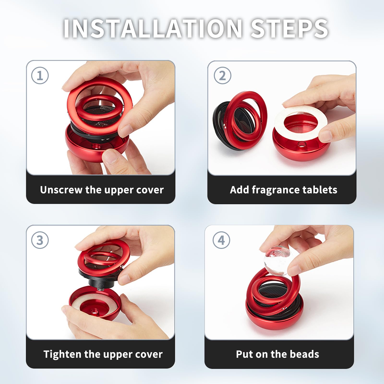 • 【Easy to Install】Unscrew the cover, put the perfume pad into and screw the cover, tear the tape to fix the air freshener