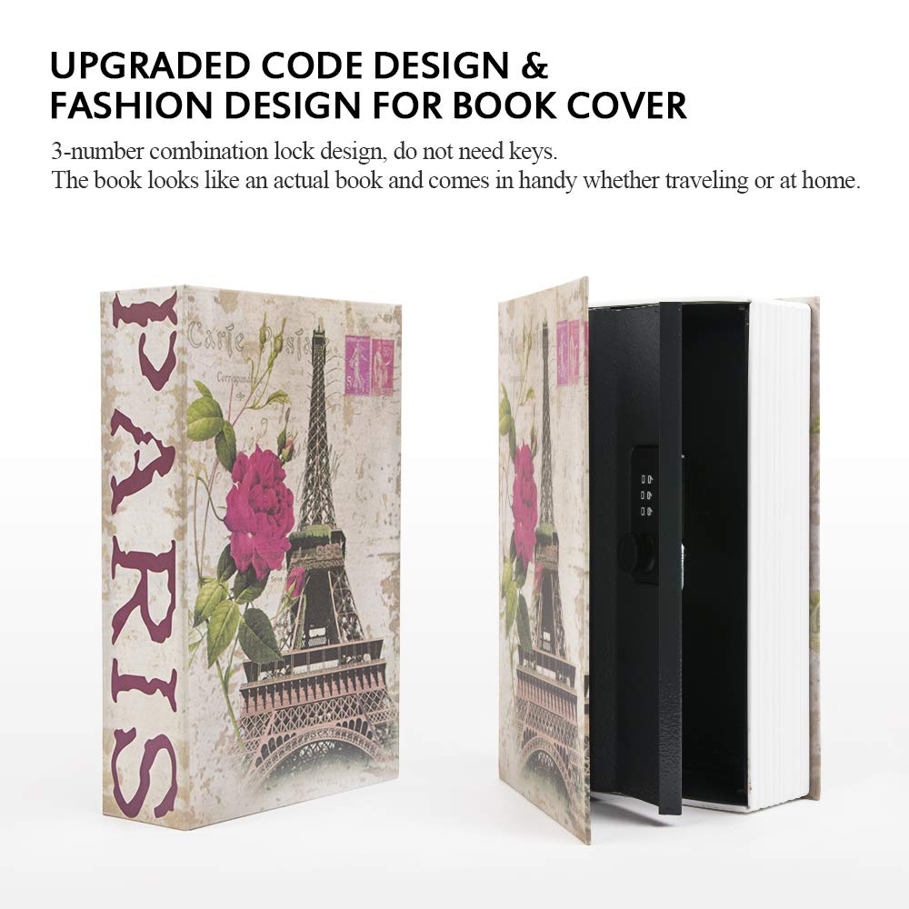 KYODOLED Diversion Book Safe with Combination Lock,Money Hiding Box,Safe Secret Hidden Metal Lock Box,Collection Box,9.5" x 6.2" x 2 .2",France