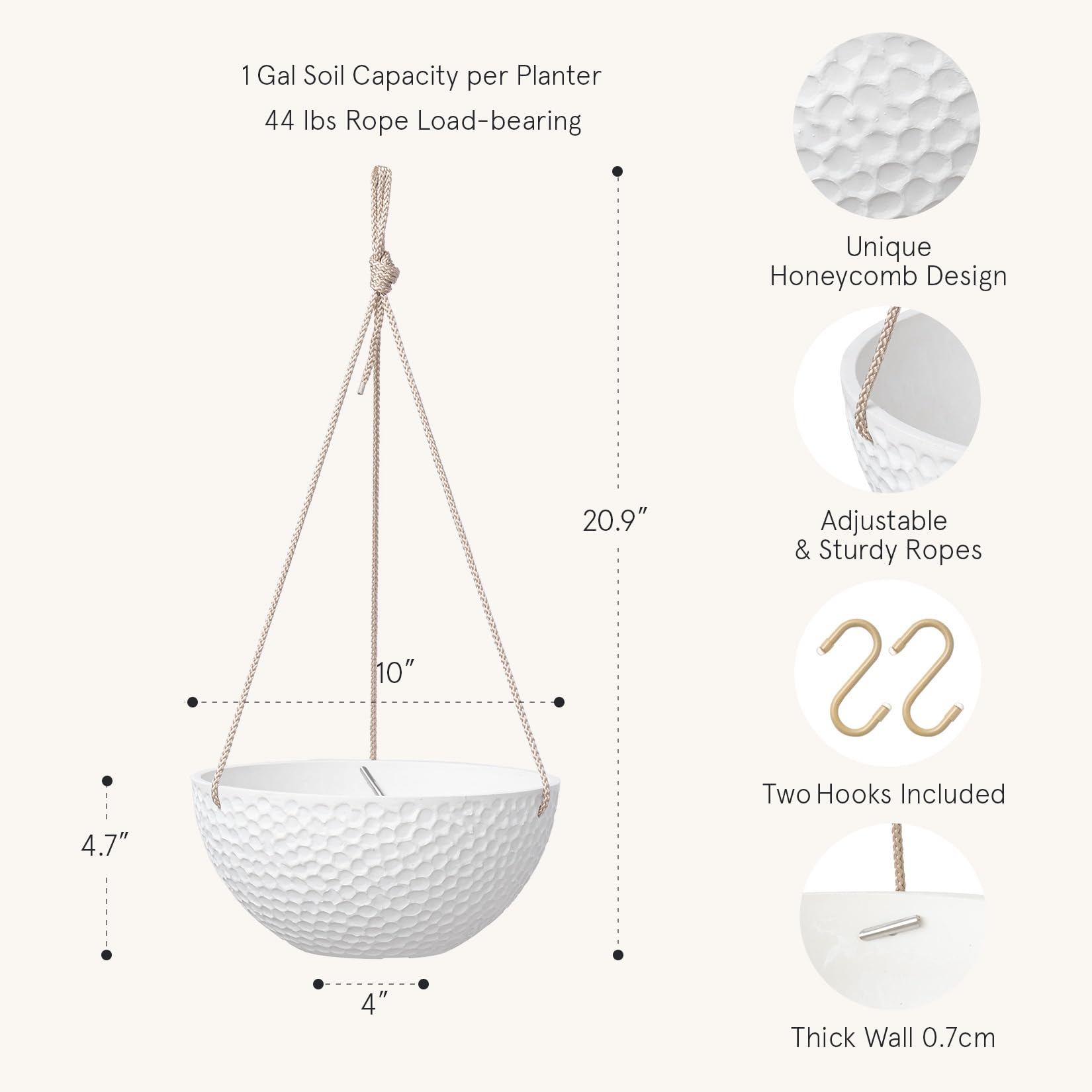 LA JOLIE MUSE 10 Inch Hanging Planters for Indoor Plants, Outdoor Garden Planter Pots, White, Honeycomb, Set of 2