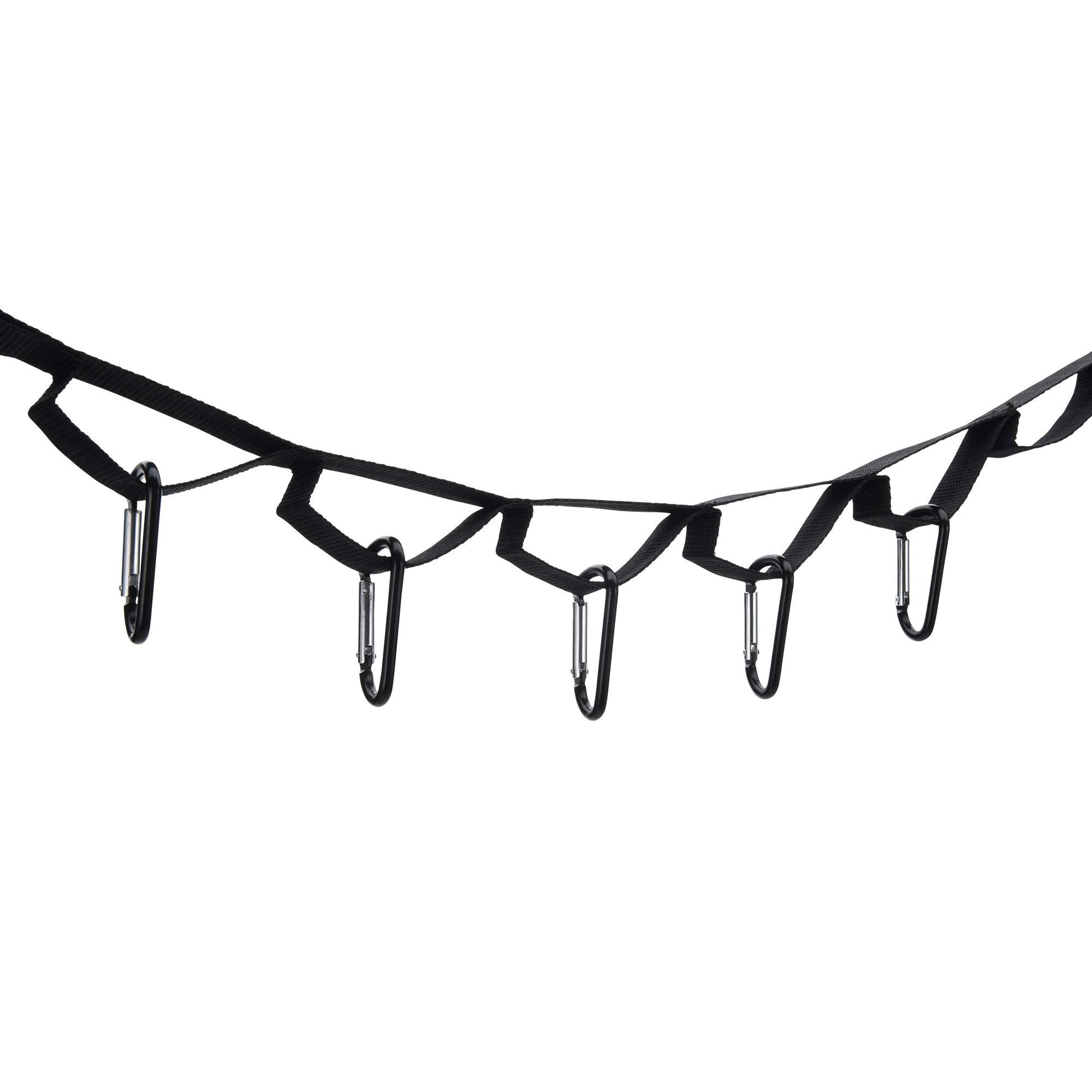 • CONVENIENT CAMPGROUND STORAGE SOLUTION: A functional strapwith carabiner hooks offers horizontal or vertical storage for camping in the woods or at the river – hang the strap between two trees and you’ll have a handy place to hang your camping supplies.