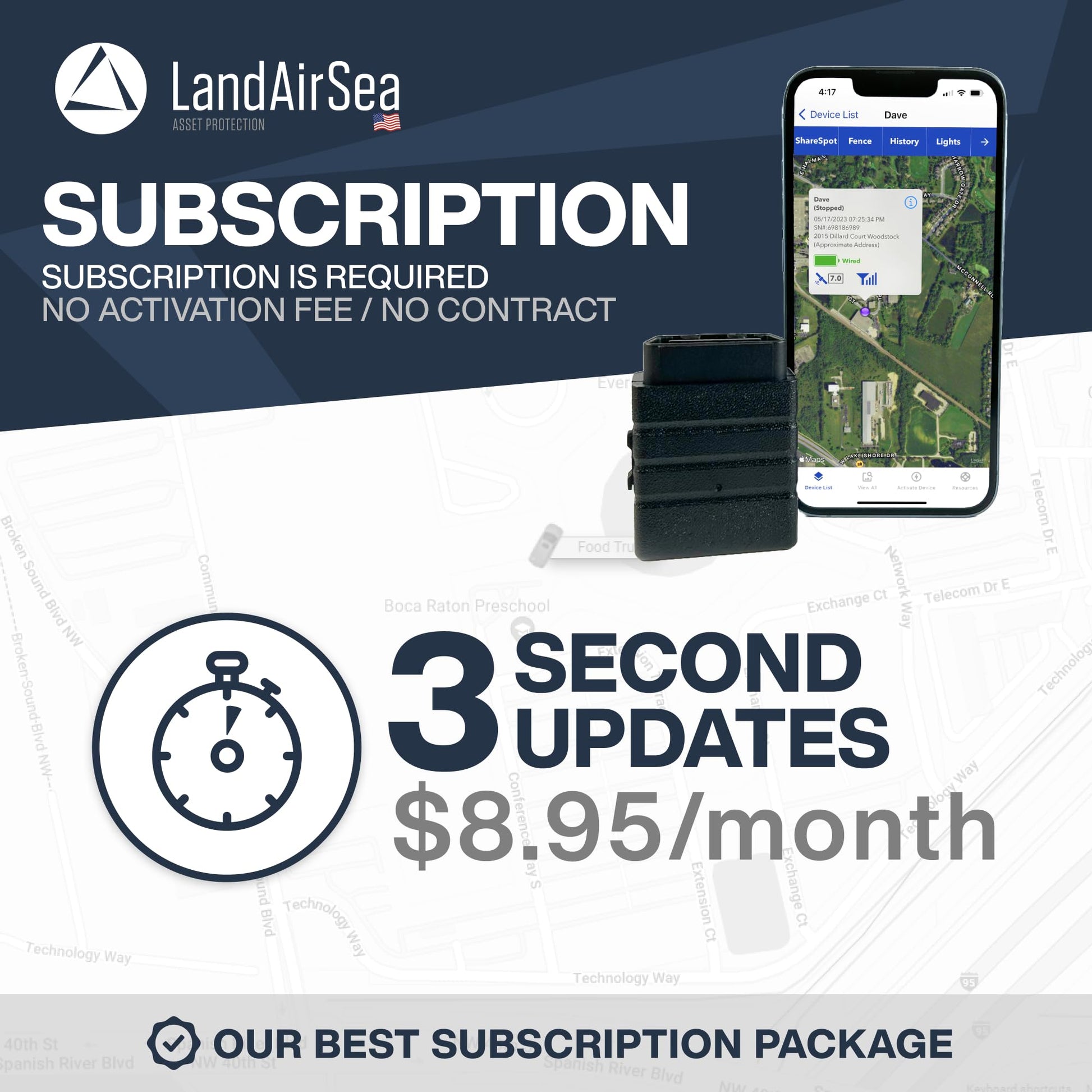 • Lifetime Warranty — This GPS tracker is built to last. LandAirSea, a USA-based company and pioneer in GPS tracking offers a lifetime warranty that covers damaged or defective devices.