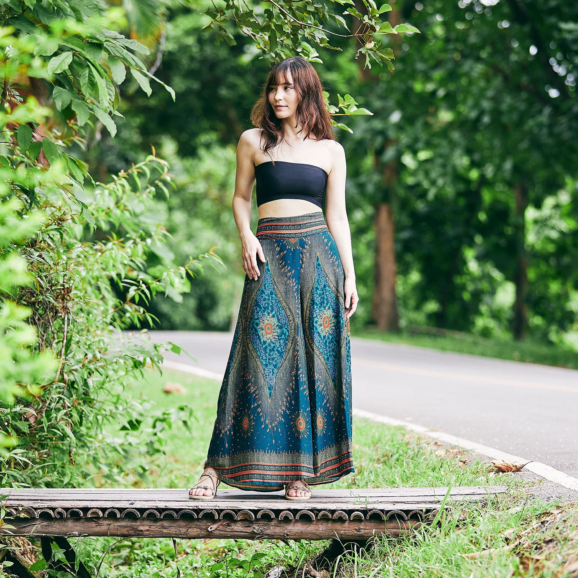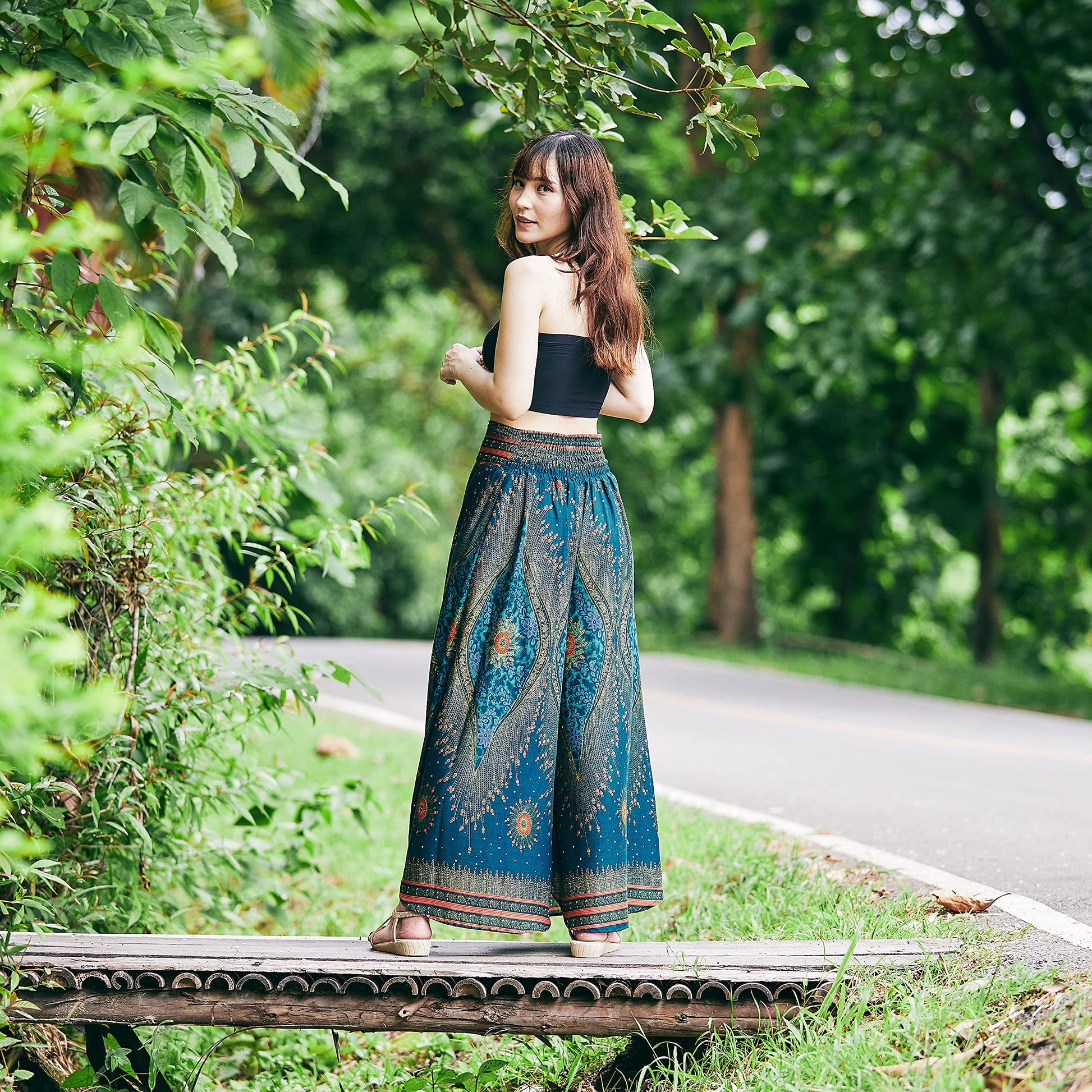 Lannaclothesdesign comfy and stylish palazzo pants have elastic waist. 4 different sizes available and many different pattern and colors. These wide leg pants are good for relaxation, traveling, dance, indoor and outdoor wear.
