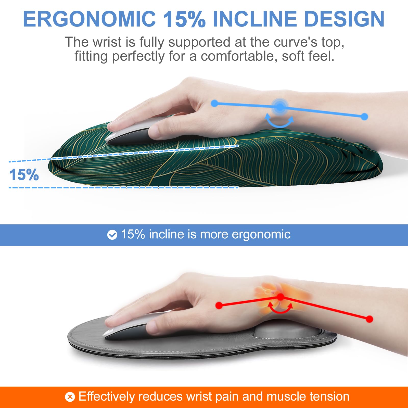 • 【Ergonomic Mouse Pad】This ergonomic mouse pad, featuring an incline of 8% in the front and 15% in the rear, is specially designed to keep your wrist in line with the keyboard and mouse. It provides comfortable support that reduces pain and fatigue from extended repetitive motion, helping to prevent carpal tunnel syndrome.
