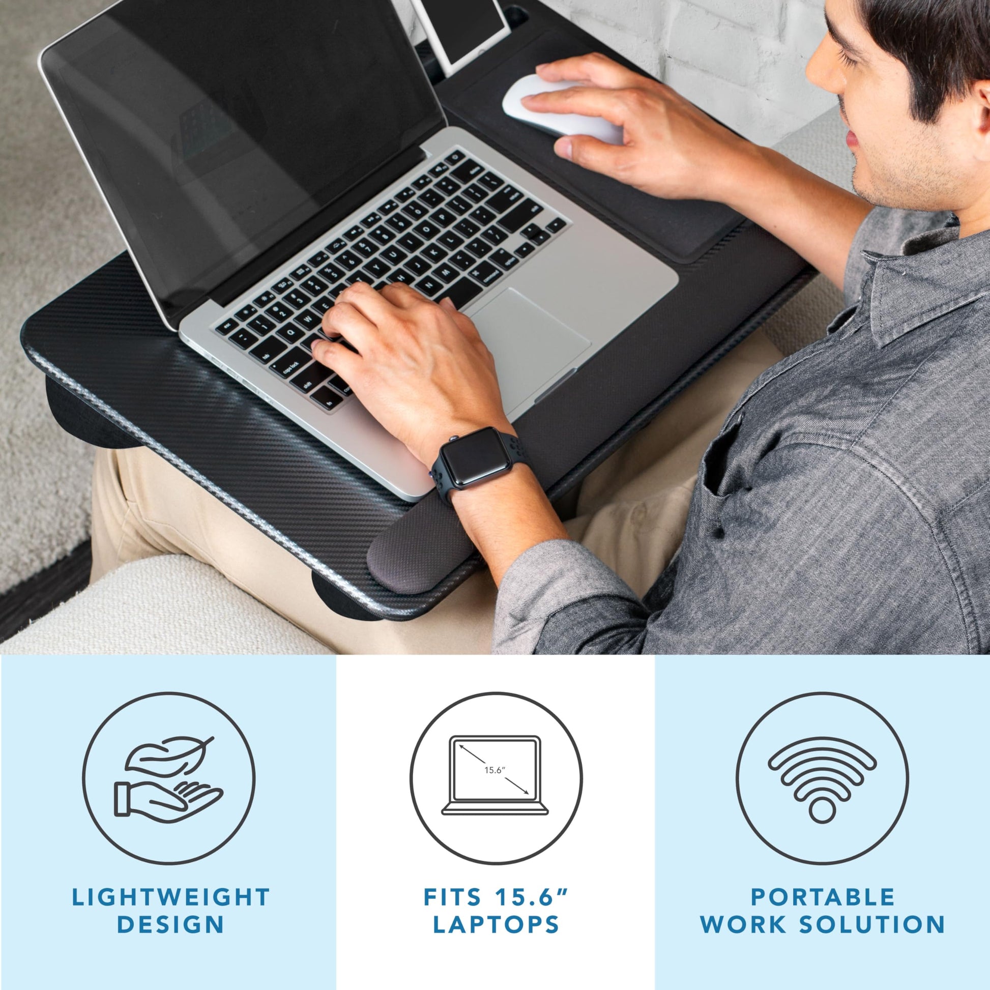 LAPGEAR Home Office Pro Lap Desk with Wrist Rest, Mouse Pad, and Phone Holder - Black Carbon - Fits up to 15.6 Inch Laptops - Style No. 91598
