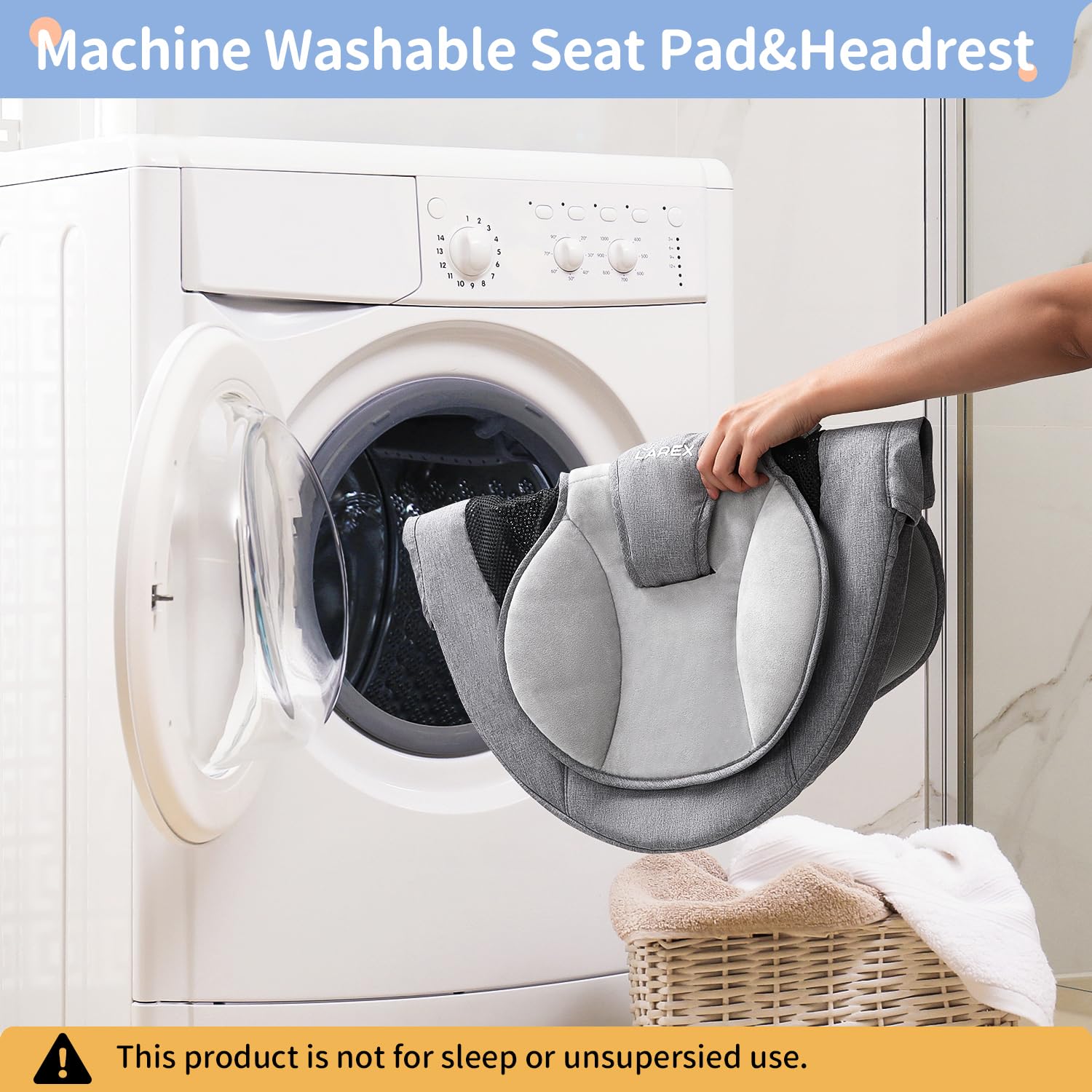 • Secure & Comfortable Seat Pad: The 3-point harness ensures safety, while the reversible plush seat pad and pillow keep baby cozy with a plush seat pad for winter and a breathable mesh pad for summer, all machine washable for easy cleaning.